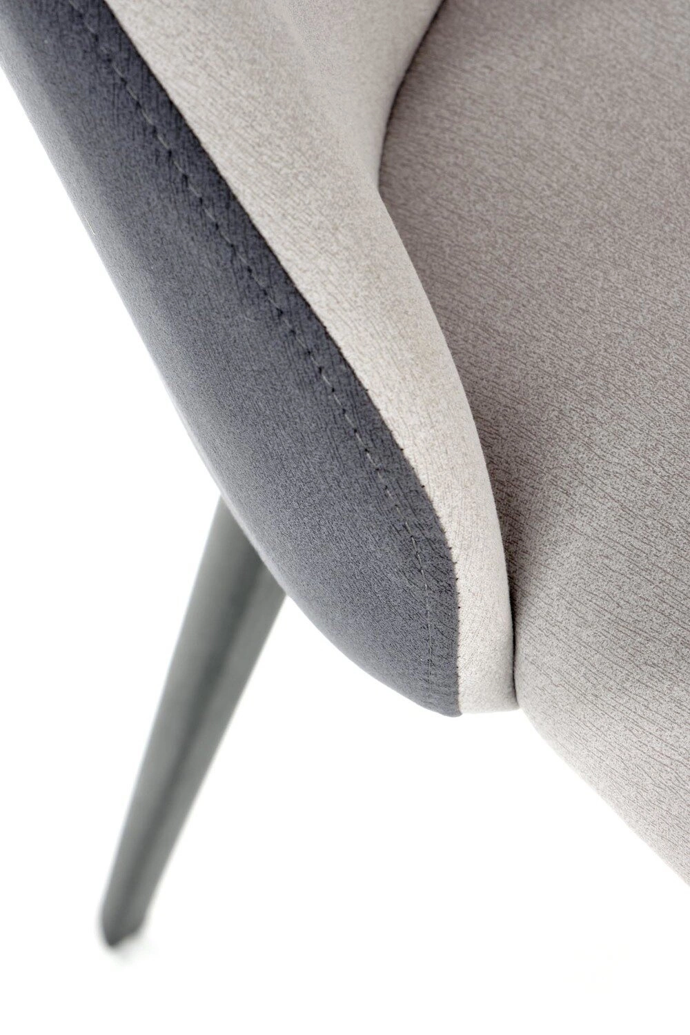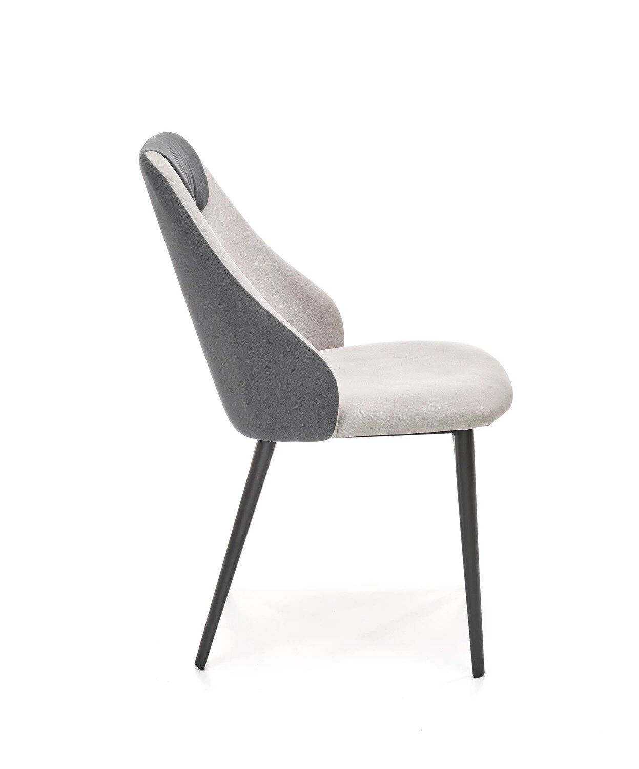 Židle Lydie byla navržena pro dlouhodobé pohodlí – čalouněný sedák a ergonomické opěradlo poskytují komfort i při delším sezení u stolu. Absence područek umožňuje snadné zasunutí židle pod stůl, což pomáhá efektivně využít prostor v jídelně nebo kuchyni. Měkká šedá látka je příjemná na dotek a snadno se udržuje v čistotě, díky čemuž je židle vhodná i do rodinných interiérů.