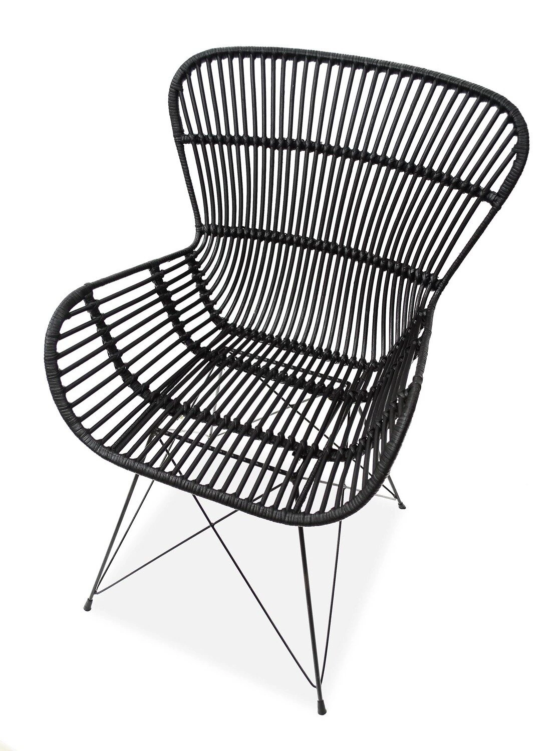 Ratanová jídelní židle s područkami Oklahoma černá moderní kovová Intesi