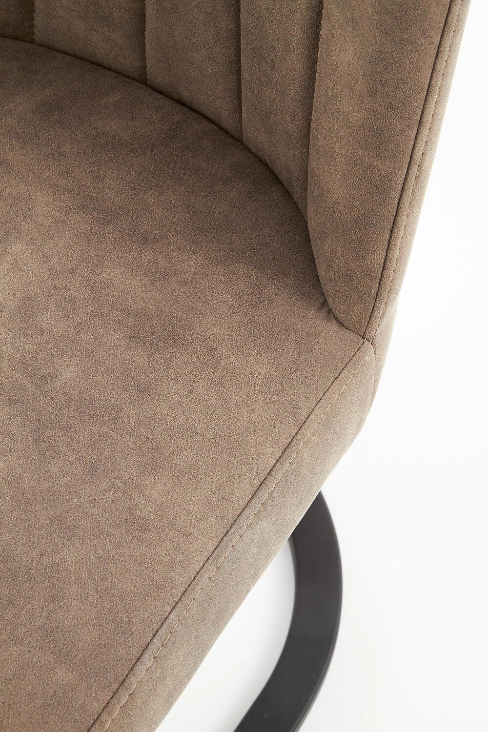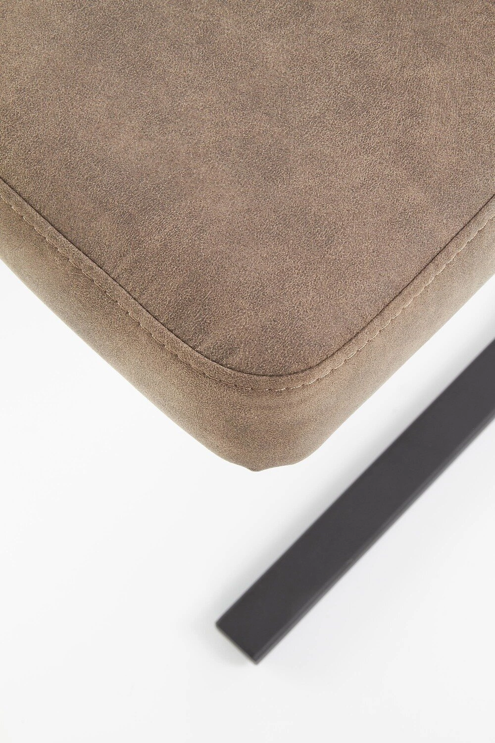 Židle Pensylwania přináší do prostoru autentickou industriální atmosféru. Čalounění z hnědé ekokůže působí elegantně a zároveň se velmi snadno udržuje v čistotě – stačí otřít vlhkým hadříkem a opět vypadá jako nová. Kovové lyžiny v černém provedení zajišťují nejen stabilitu, ale dodávají celku moderní lehkost. Tento kus nábytku se perfektně hodí k surovým interiérům, betonu, cihle nebo dřevu.