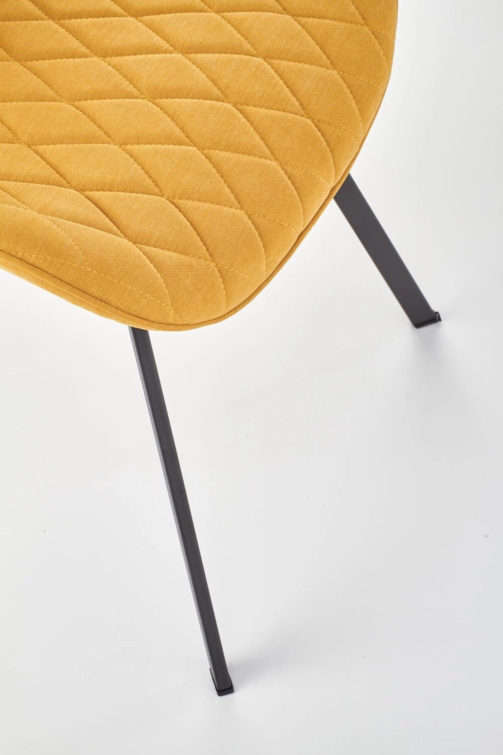 Výrazná hořčicová barva židle Vermont dodává každému interiéru osobitý styl. Čalouněný sedák s jemným prošíváním perfektně zapadne do současných moderních bytů a zároveň je univerzální – snadno ho sladíte jak se světlými, tak s tmavšími stoly a doplňky. Černá, práškově lakovaná konstrukce nejen skvěle vypadá, ale také zajišťuje dlouhou životnost židle.