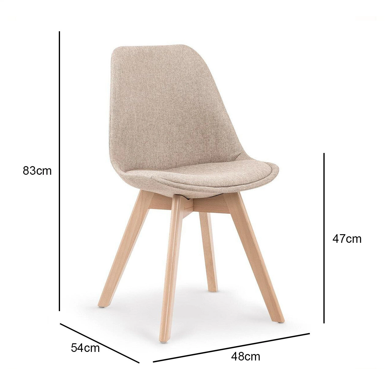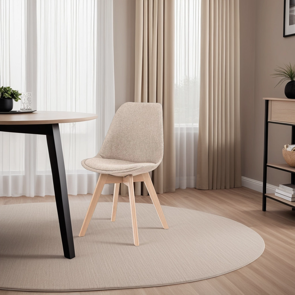 Židle Dimi je ideální volbou pro ty, kteří preferují minimalistický design a praktičnost. Světlý béžový potah krásně ladí s přírodním dřevem a vytváří útulnou a harmonickou atmosféru v interiéru. Skandinávský tvar zaručuje, že se židle skvěle hodí jak k jídelnímu stolu, tak do domácí kuchyně nebo stylové kavárny. Díky vysokým nohám z lakovaného bukového dřeva je úklid pod židlí snadný – robotický vysavač bez problémů zajede pod židli, což oceníte při každodenním používání.