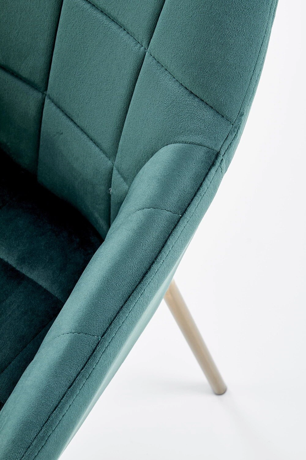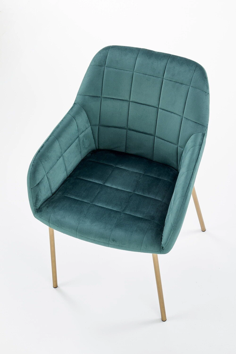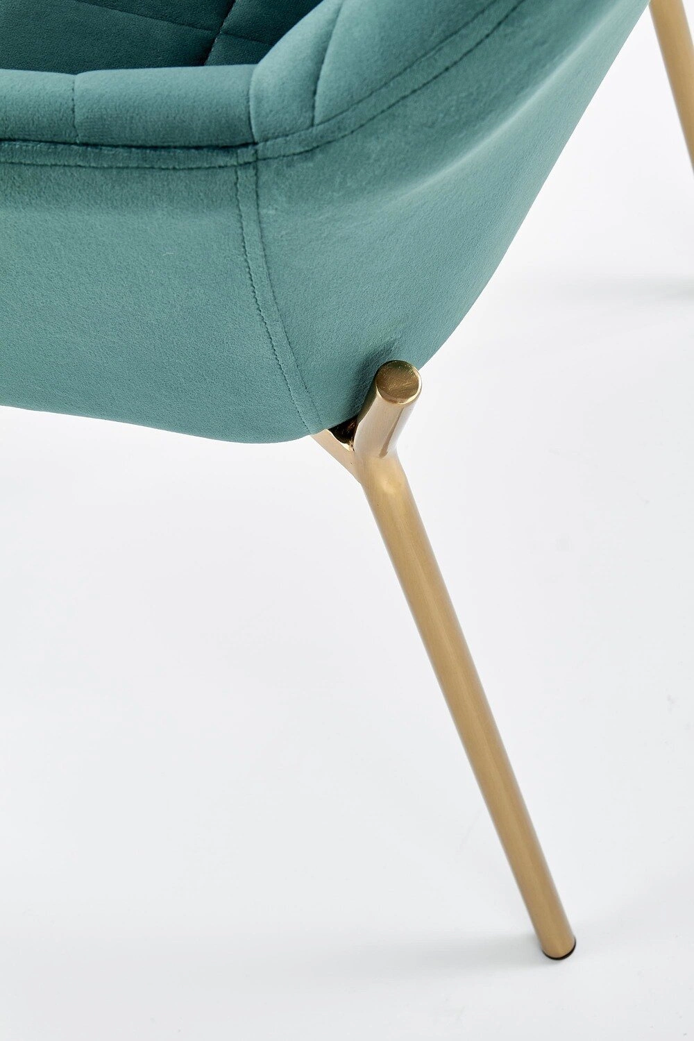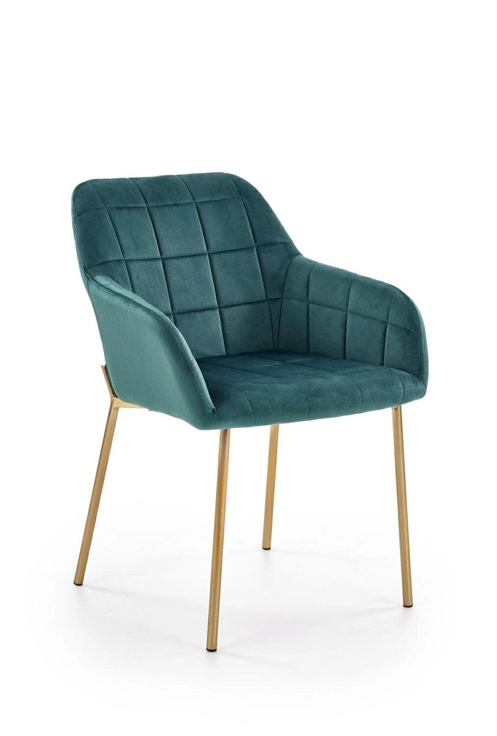 Elegance v módních odstínech zelené a zlaté Křeslo Minnesota je výrazem luxusu a elegance, který vnese do vašeho interiéru jedinečné kouzlo. Její pečlivě promyšlený design a solidní zpracování z ní činí vynikající dekoraci v jídelně, kuchyni nebo jako elegantní sedátko u toaletního stolku. Sedák a opěradlo jsou čalouněny měkkou sametovou látkou v krásném zeleném odstínu, což mu dodává jedinečný půvab. Jejich prošívaná úprava navíc dodává židli jemný, klasický charakter. Základnu nábytku tvoří čtyři pevné kovové nohy ve zlaté barvě, které nejen dodávají eleganci, ale také zajišťují stabilitu. Nohy jsou navíc opatřeny podložkami, které chrání podlahu před poškrábáním. Židle Minnesota je nejen estetickou ozdobou, ale také praktickým sedákem. Pevné materiály použité při její výrobě zaručují dlouhou životnost. Je ideální volbou do elegantních jídelen, kuchyní nebo jako okouzlující sedátko u toaletního stolku. Stojí za to si ho zapamatovat! Jedinečný design a solidní zpracování Měkká sametová látka s prošívanou úpravou Pevné kovové nohy ve zlaté barvě