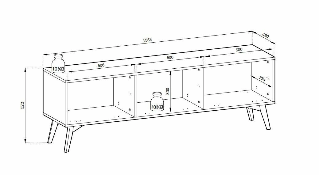 - Šířka 158,3 cm – tv stolek 160 cm ideální pod střední i větší televize, vhodný i do menších prostor.