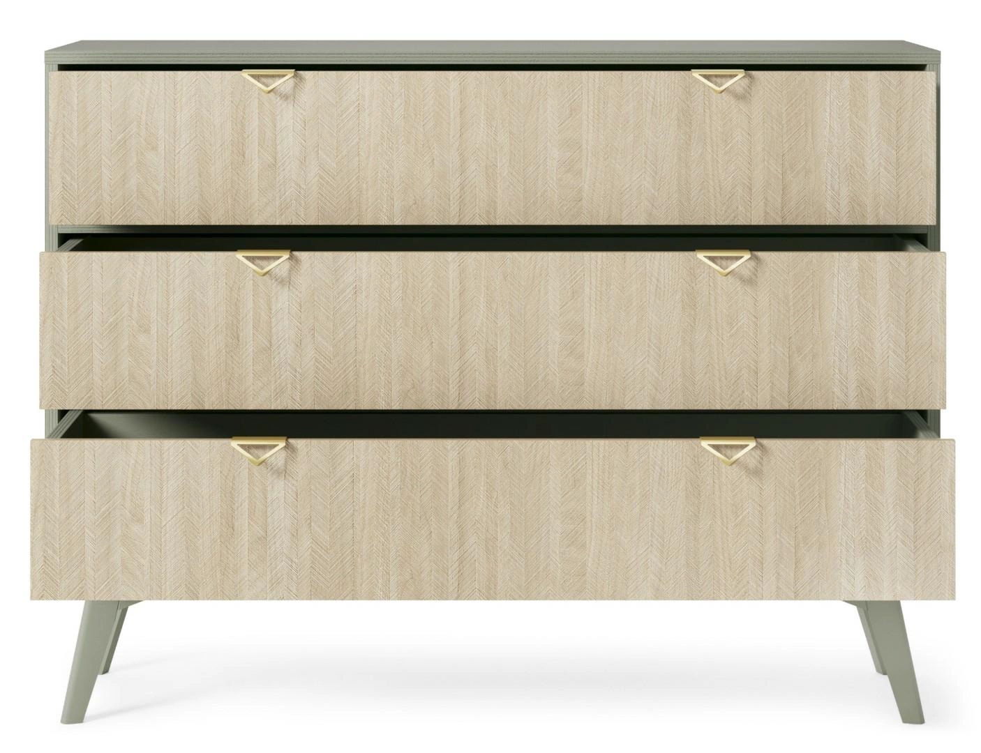 Komoda se zásuvkami Sage 106 cm rybí kost s nádechem šalvějové zeleně glamour na nožkách do obýváku Intesi