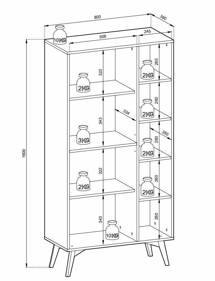 Promyšlená konstrukce knihovny Sage umožňuje snadno uspořádat knihy i další předměty denní potřeby. Čtyři široké police jsou ideální na vystavení sbírky knih, keramiky nebo květin, zatímco dvě uzavíratelné skříňky schovají vše, co nechcete mít na očích. Díky rozměrům 80×38×160 cm se tento kus nábytku skvěle hodí i do menších prostor a nezatěžuje interiér.