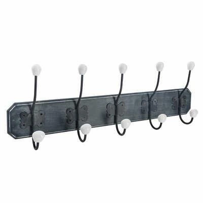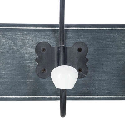 Nástěnný věšák do předsíně Ruben 5 háčků vintage tmavě modrý Atmosphera je jedinečnou kombinací funkčnosti a stylu inspirovaného starodávnými interiéry. Vyrobený z odolné MDF desky a kovu, s dekorativními keramickými úchyty, tvoří praktickou i dekorativní lištu o šířce 60,5 cm. Tento závěsný vintage věšák v tmavě modré barvě je ideální volbou do předsíně, šatny nebo koupelny, kde pomůže udržet pořádek a zároveň podtrhne charakter vašeho interiéru.