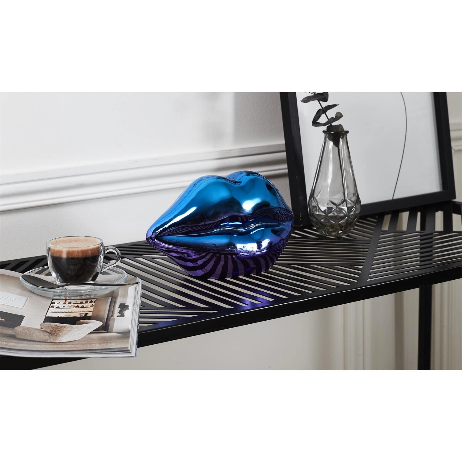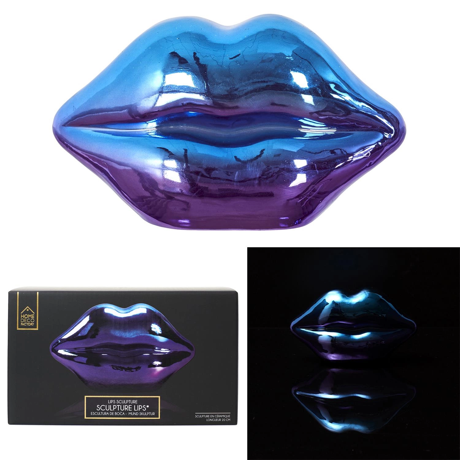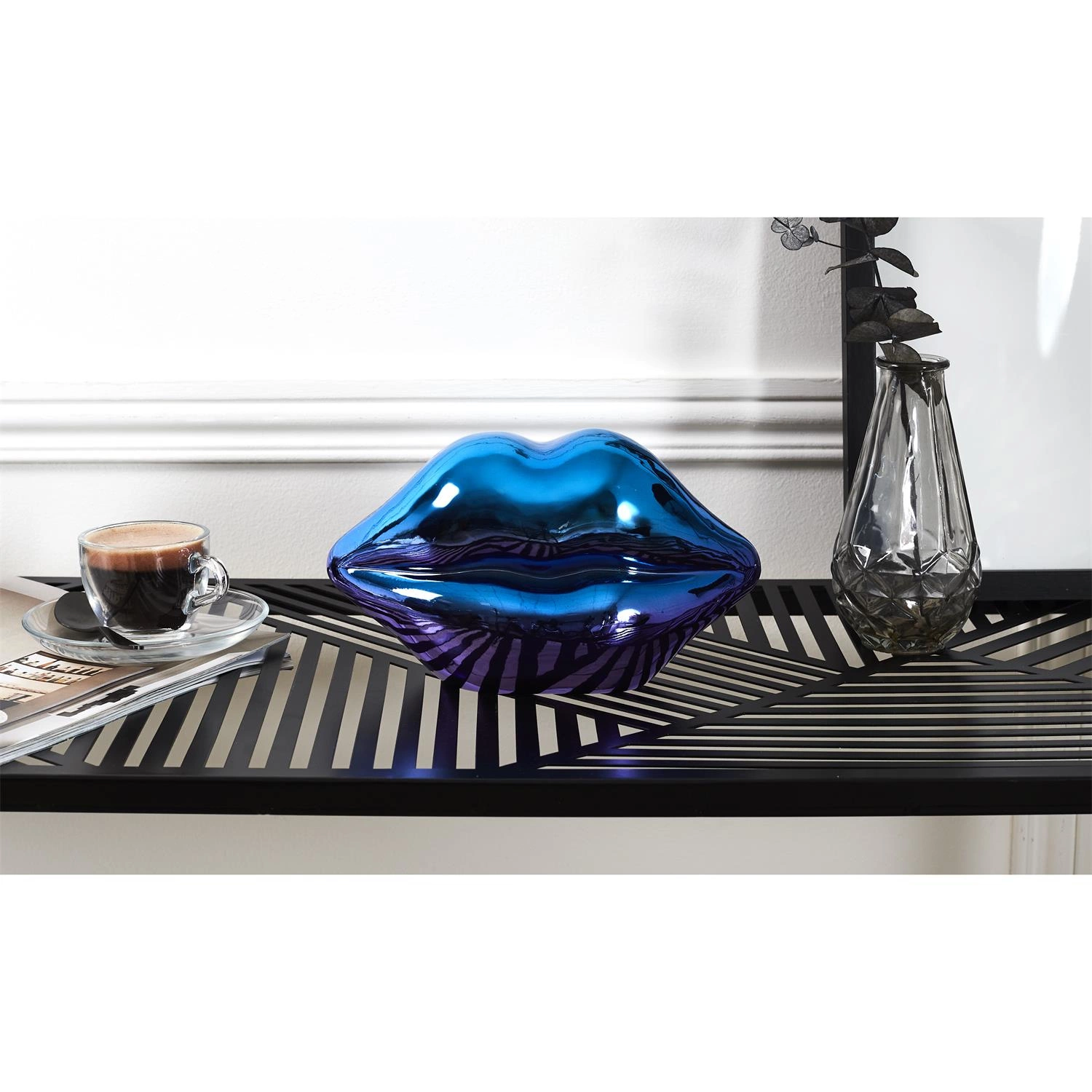 Dekorativní figurka rty Intesi představuje moderní akcent, který okamžitě upoutá pozornost každého návštěvníka. Vyrobena z vysoce kvalitní keramiky, zaujme opalizujícím povrchem v odstínech modré a fialové. Její rozměry – výška 19,7 cm, šířka 19,7 cm a hloubka 11 cm – ji činí ideální dekorací na komodu, polici či konferenční stolek v obývacím pokoji. Unikátní tvar rtů a efekt proměnlivých barev dělají z této ozdobné figurky perfektní doplněk jak do elegantních, tak i minimalisticky laděných interiérů.