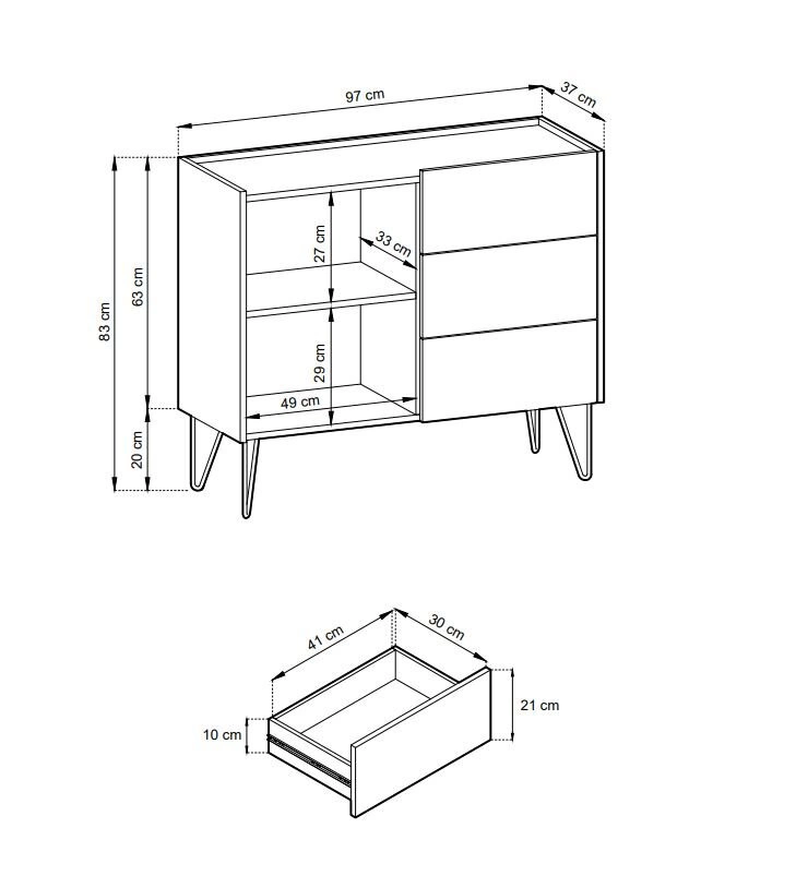 - Komoda je vyrobena z vysoce kvalitních materiálů