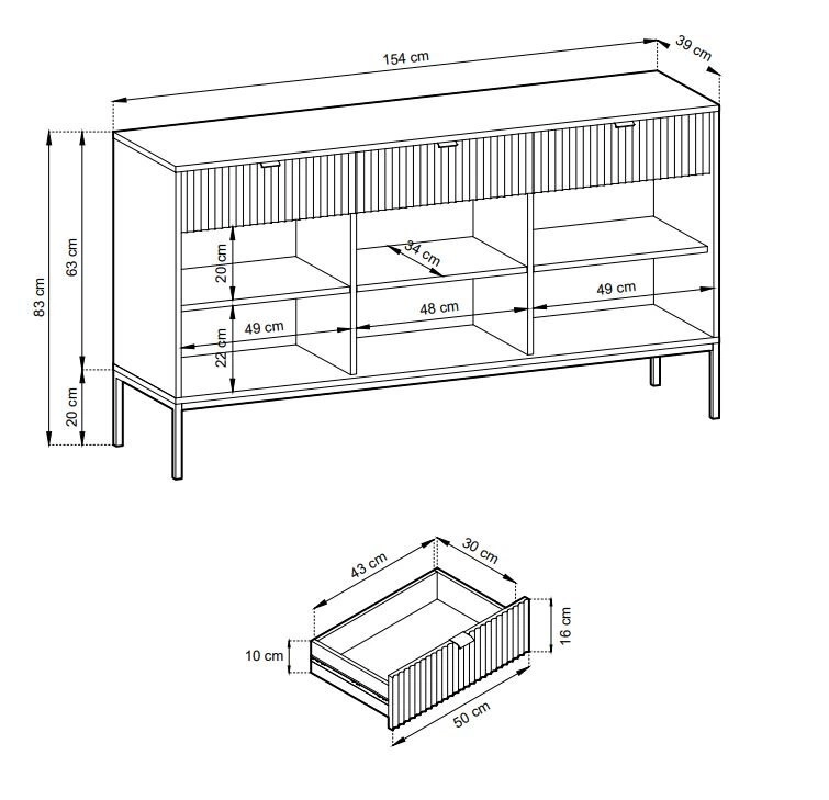 - Velká komoda s drážkou (výška: 83 šířka: 154 hloubka: 39)