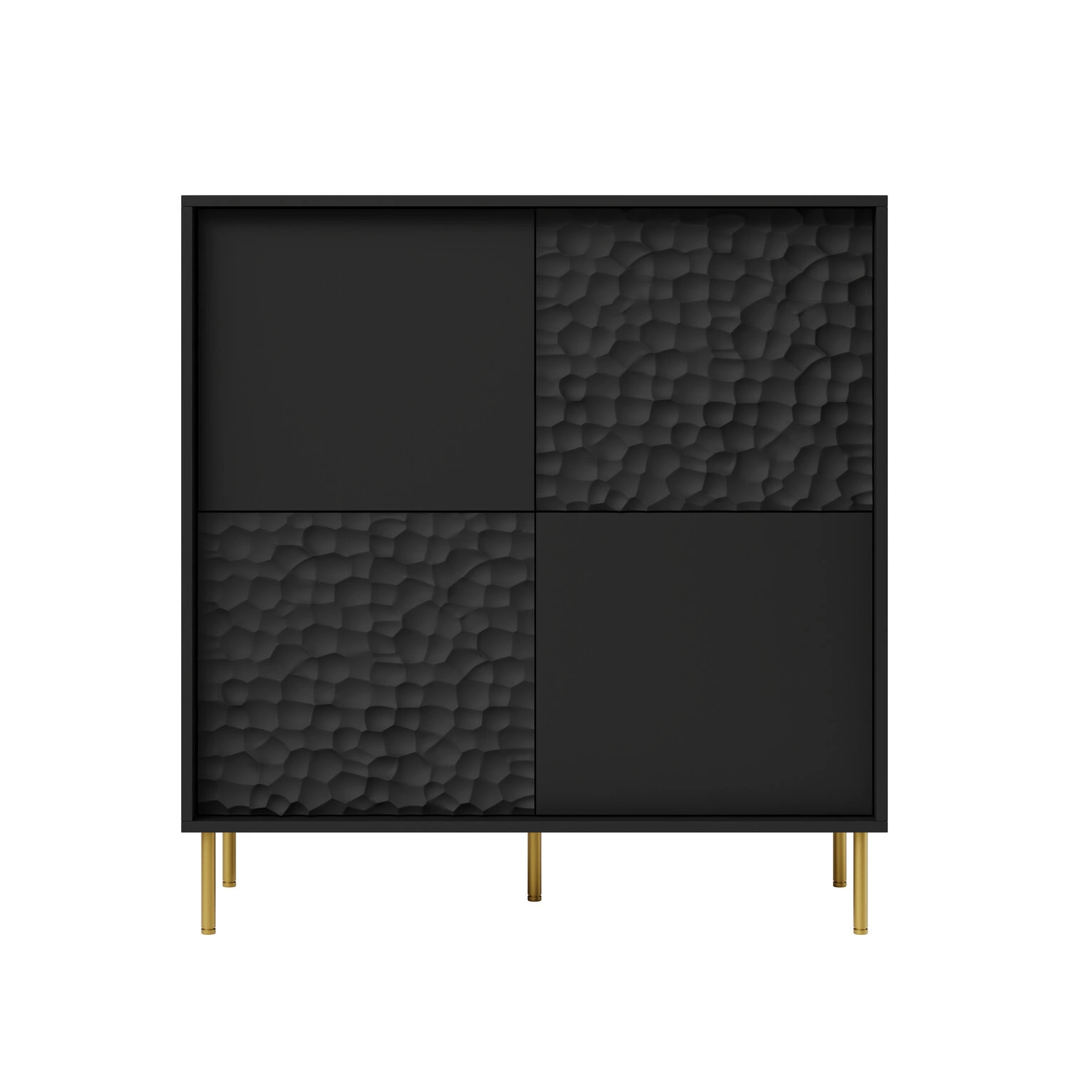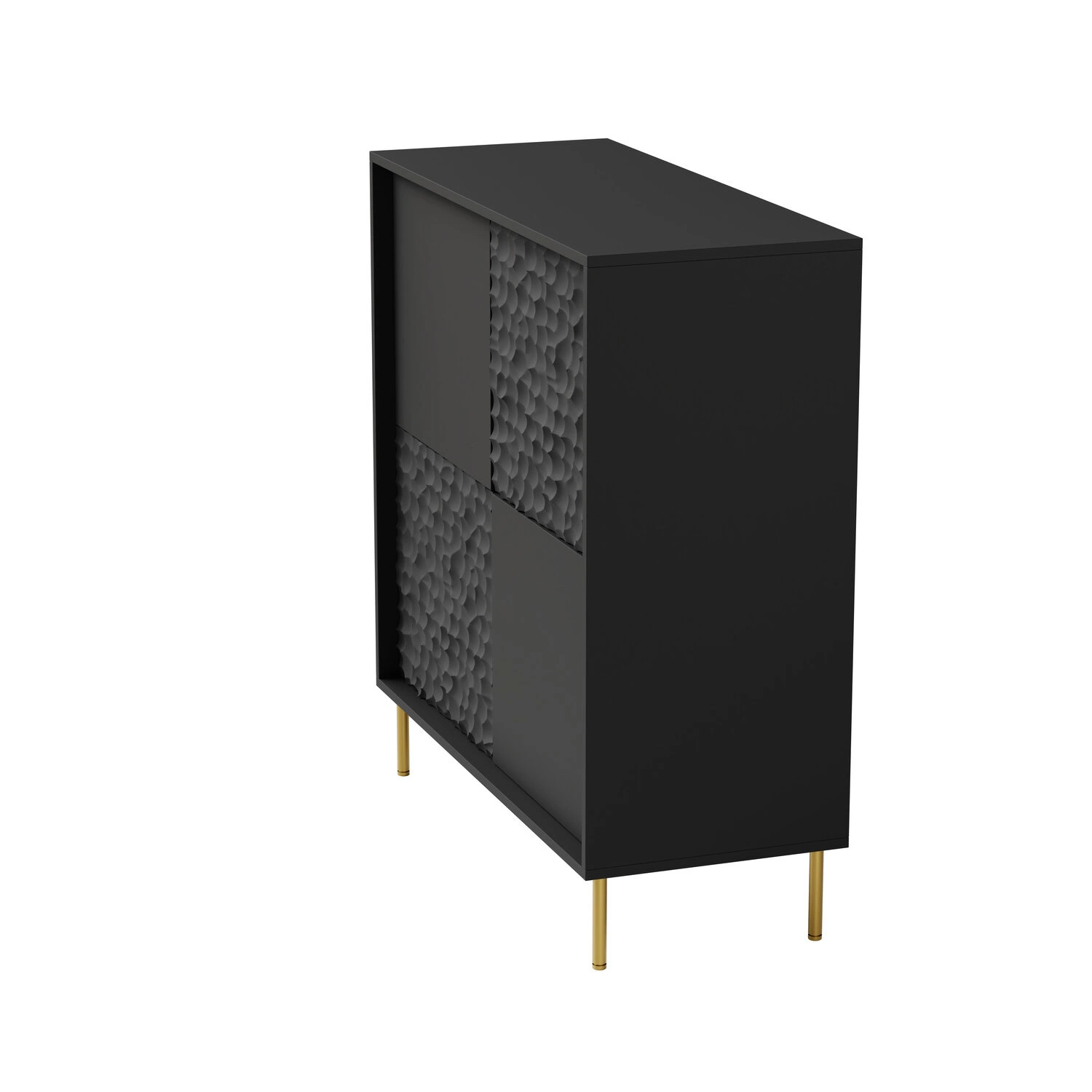 - Kolor czarny sprawia, że szafka doskonale dopasowuje się do różnych stylów wnętrzarskich, dodając im elegancji i luksusowego charakteru.