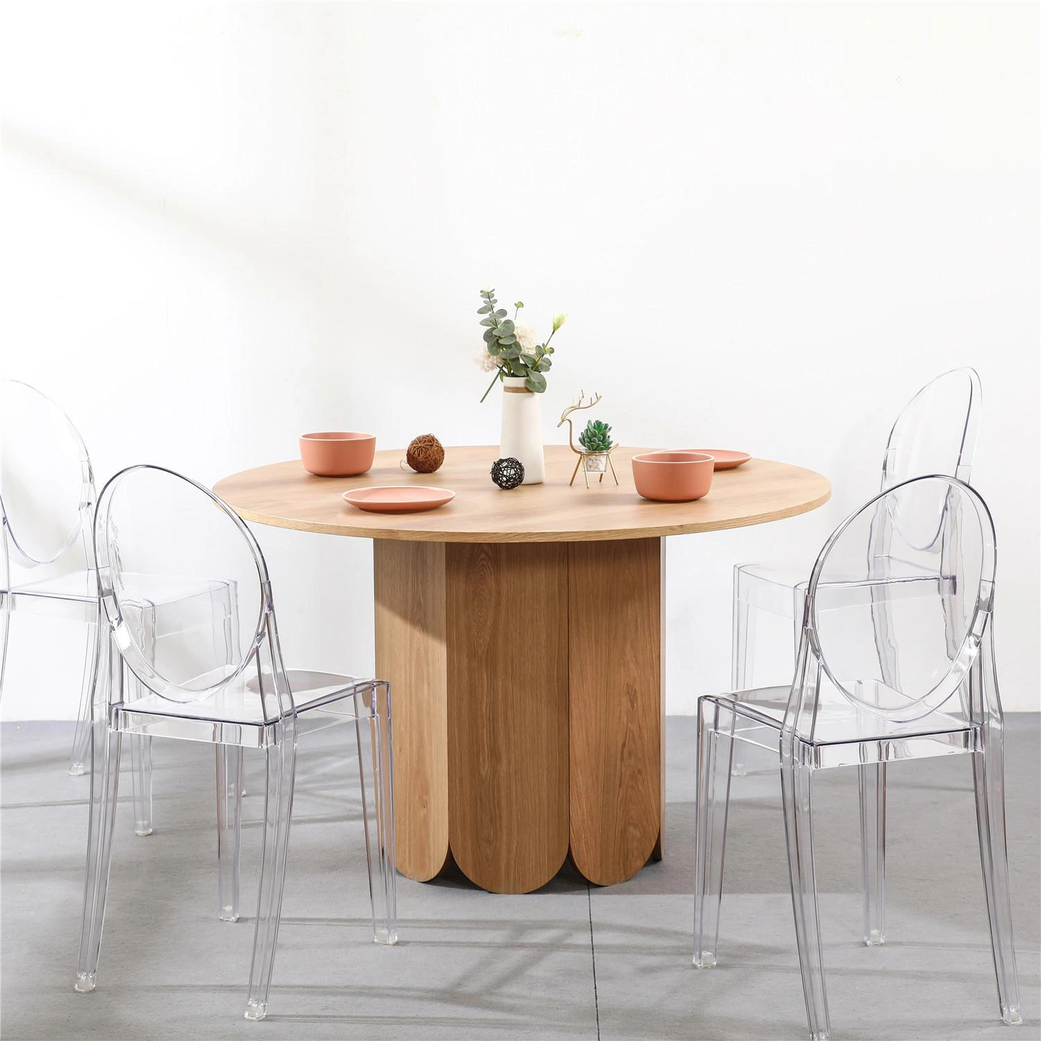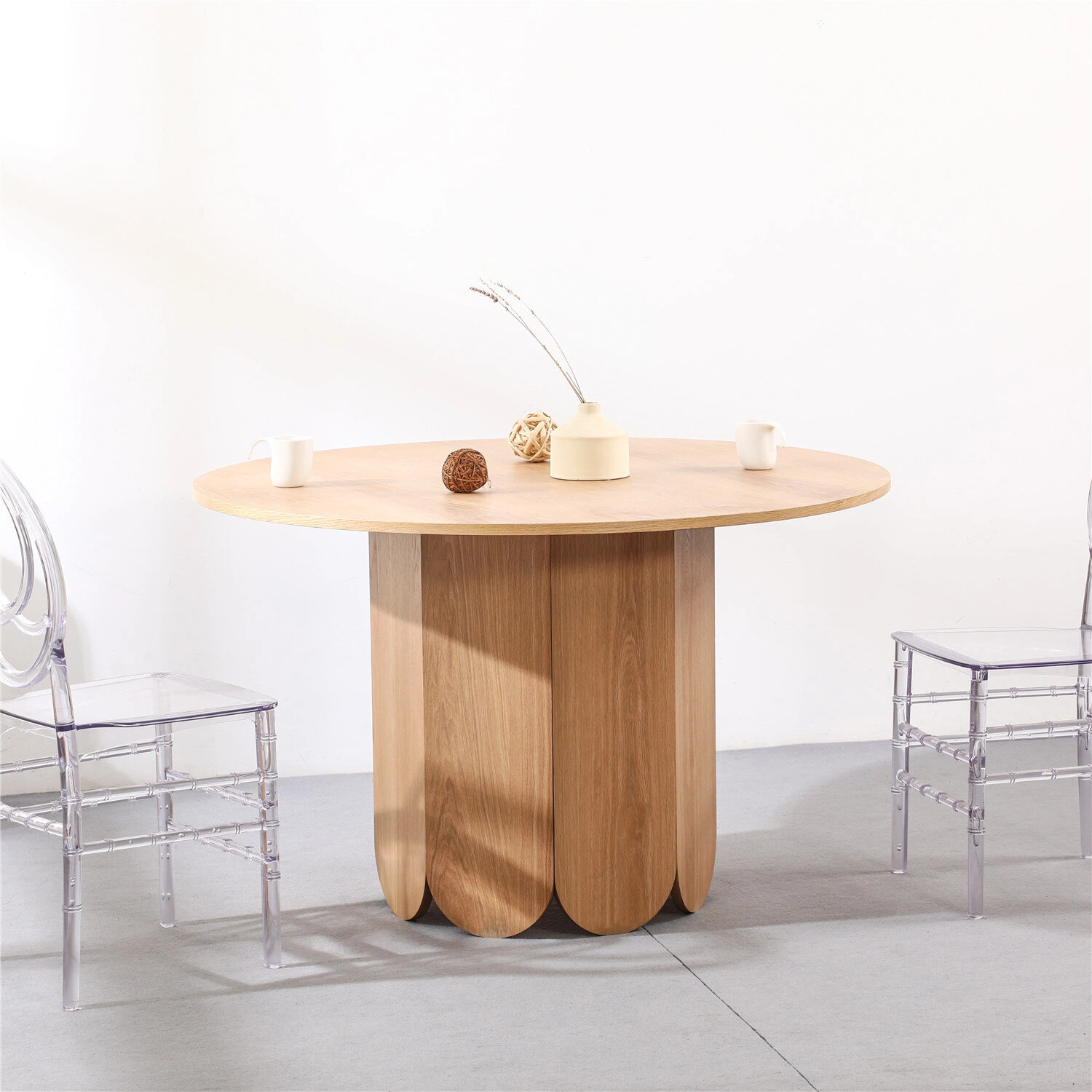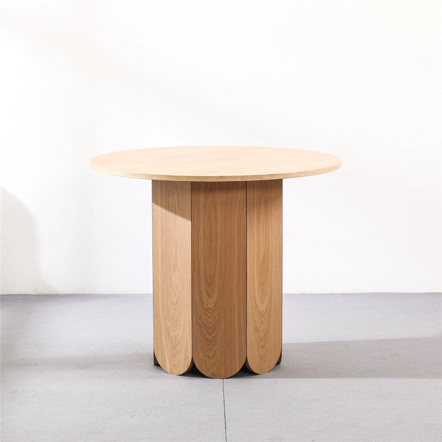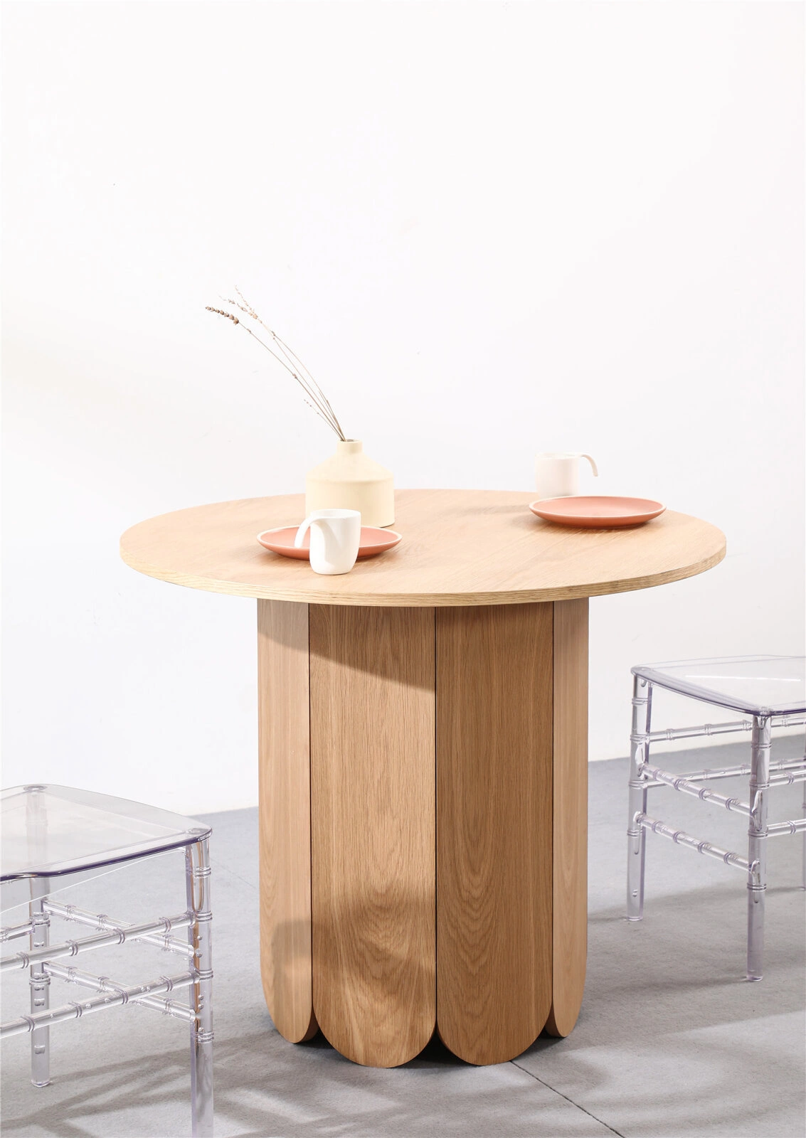 Stůl Puro - Kulatý dubový stůl | Intesi Získejte nadčasový vzhled se stolem Puro od společnosti Intesi. Dubový kulatý stůl je ideální do interiérů v boho nebo skandinávském stylu a má osmibokou podnož z dýhované MDF, která realisticky imituje dubové dřevo, a černé plastové nohy, které chrání podlahu. Jeho maximální nosnost je 50 kg, takže se stane odolným doplňkem vašeho interiéru. Dubový stůl Puro je vrcholem funkčnosti a boho stylu. Tento nadčasový kus nábytku, který je ideální pro boho i skandinávské interiéry, byl navržen tak, aby byl krásný a odolný. Kulatá deska z MDF měří 90 cm a stojí na jediné robustní osmiboké noze vyrobené z odolné MDF s dubovou dýhou a jemnými křivkami na bocích. Stůl vypadá skvěle a barvy desky a podnože byly pečlivě vybrány tak, aby spolu ladily. Konstrukce byla dále zpevněna černými plastovými nohami, aby nedošlo k poškrábání podlahy. Nenechte se zmást jeho vzhledem - tento lehký stůl váží pouhých 23 kg a unese až 50 kg. Dubový stůl Puro se snadno montuje a nabízí dokonalou rovnováhu mezi estetikou, odolností a funkčností. Stojí za to si ho zapamatovat! Vynikněte s jedinečným stolem, který vylepší každý prostor Bezkonkurenční odolnost a stabilita díky osmiúhelníkové konstrukci nohou Realistická dubová dýha pro nadčasový, přírodní vzhled Chraňte svou podlahu před poškrábáním díky černým ochranným nohám