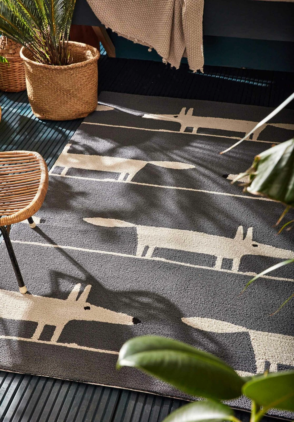Szary dywan zewnętrzny na taras 90x150 nowoczesny Carpets & More łatwy w czyszczeniu