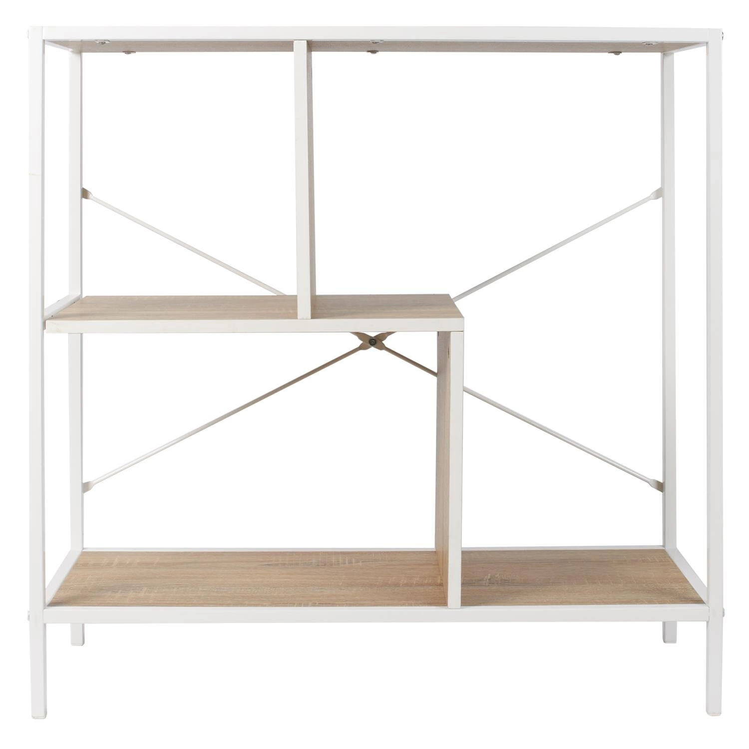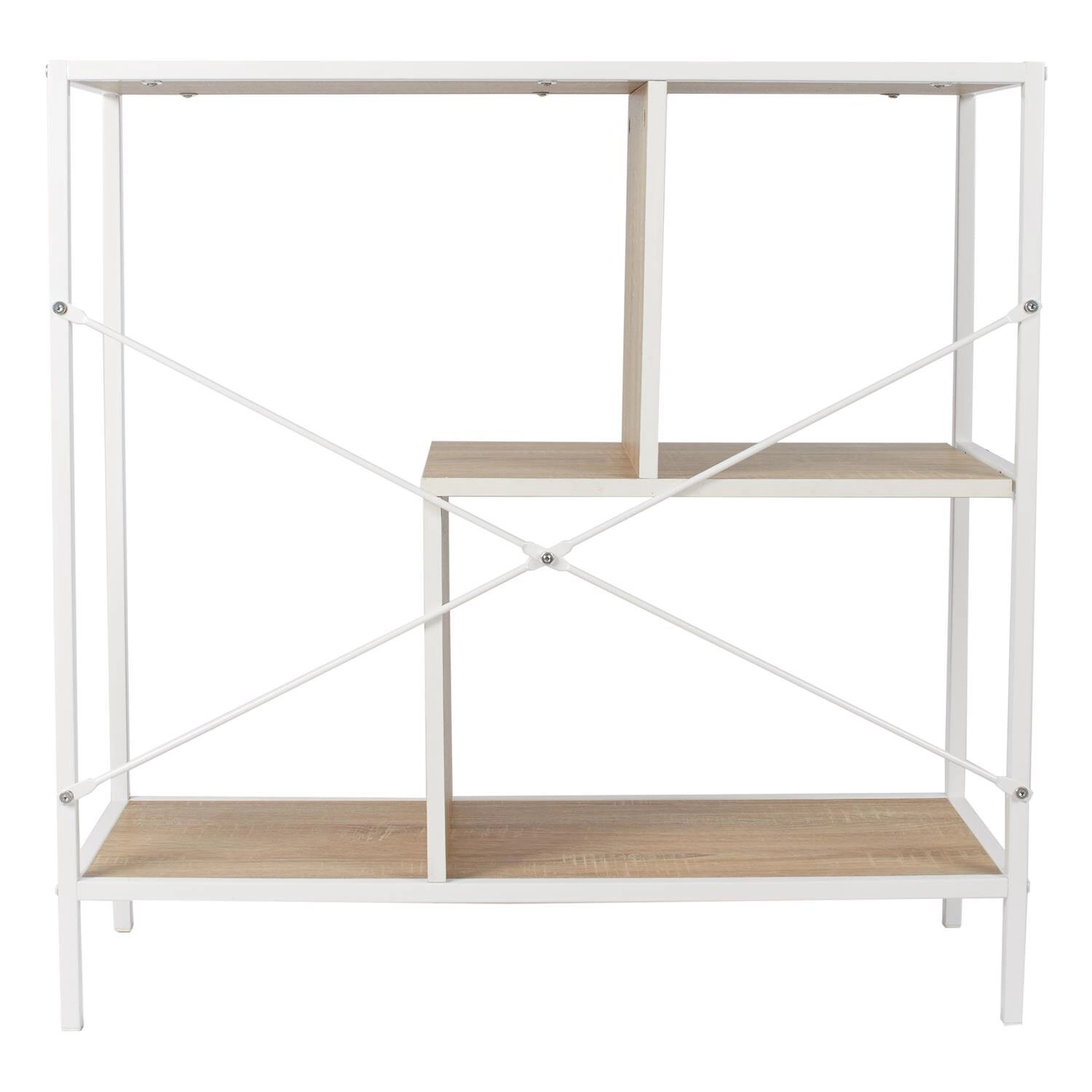Knihovna Rack S od značky Intesi je moderní loftový regál o výšce 80 cm, který kombinuje bílý kovový rám s policemi v přírodním odstínu. Díky čtyřem nepravidelně rozmístěným policím je ideální volbou jak do obývacího pokoje, tak do domácí kanceláře. Spojení kovu s MDF deskou a vysokými nožkami (10 cm) zajišťuje, že Rack S je nejen stabilní a odolný, ale také snadno udržovatelný v čistotě a kompatibilní s robotickými vysavači.