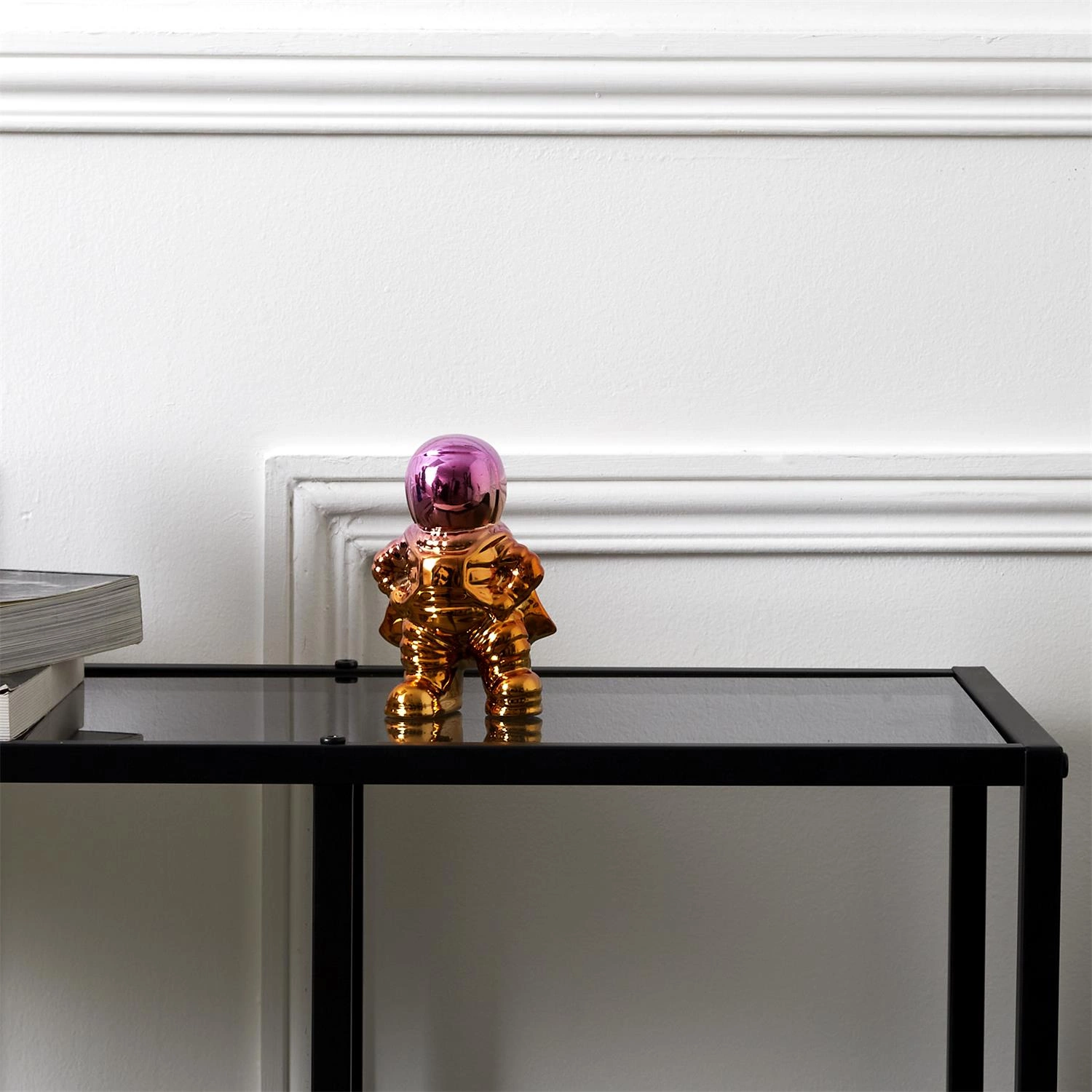 Dekorativní figurka Astronaut růžový keramická je také skvělým tipem na dárek. Jedná se o originální překvapení k různým příležitostem – ke Dni žen, na Valentýna nebo k narozeninám pro milovníky moderních dekorací a netradičních inspirací. Jemný lesk, precizní zpracování a kombinace růžové se zlatým akcentem dělají z této figurky perfektní volbu nejen do moderního obýváku, ale také do dětského nebo studentského pokoje.