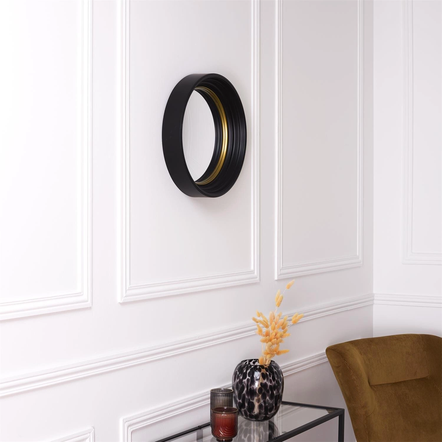 Zrcadlo Oko bylo navrženo pro maximální pohodlí při běžném používání. Vypouklá skleněná plocha opticky zvětšuje odraz, díky čemuž jsou každodenní činnosti jako úprava účesu, make-upu nebo poslední pohled před odchodem z domu jednodušší a preciznější. Kulaté zrcadlo do předsíně poskytuje široký zorný úhel i v menších prostorech.