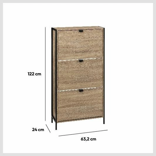 Botník Aliaj 3-dveřový je navržen pro každodenní používání – kvalitní materiály zajišťují odolnost vůči poškození a stabilitu, přičemž certifikace FSC potvrzuje šetrnost k životnímu prostředí. Montáž je jednoduchá a nevyžaduje speciální nářadí. Je to ideální volba pro ty, kdo hledají praktické řešení a moderní industriální vzhled pro svůj domov.
