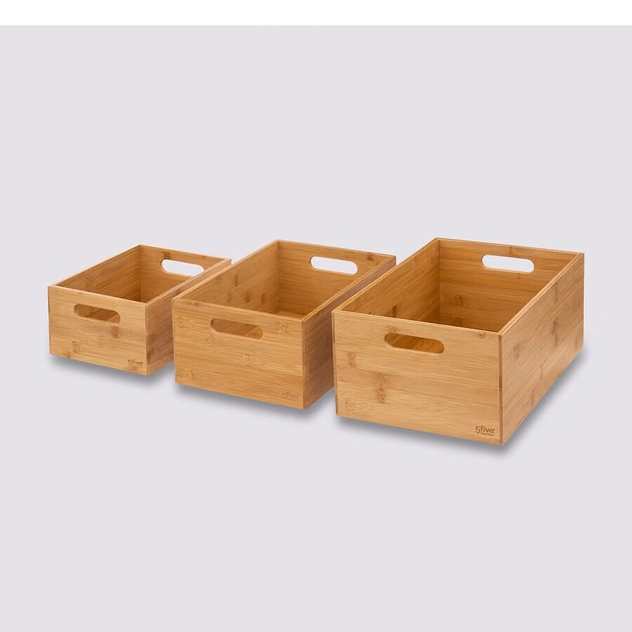 Tato sada 3 bambusových boxů s uchy je ideální pro ukládání různých předmětů v kuchyni, spíži nebo třeba v koupelně. Boxy jsou vyrobeny z bambusového dřeva a jsou mimořádně odolné vůči vlhkosti, takže jsou ideální pro skladování potravin i ručníků. Bambusové dřevo je přírodní materiál, který nejenže dodá eleganci a styl každé místnosti, ale je také pr.šetrný k životnímu prostředí. Boxy vyrobené z tohoto materiálu jsou pevné a odolné, takže vydrží dlouho.