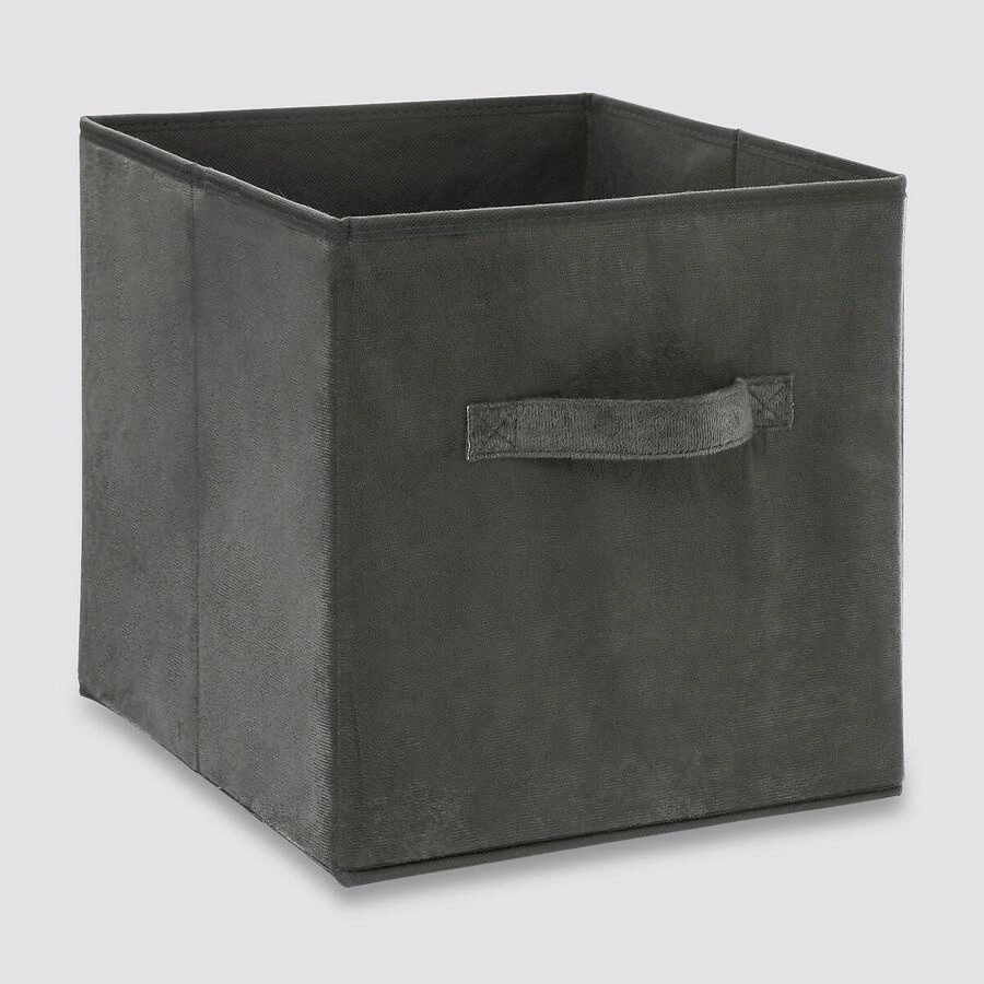 Šedá látková krabice Velvet 5five simply smart spojuje elegantní vzhled s praktickými detaily. Měkká, sametová tkanina dodává útulný nádech, který zútulní každý domov. Díky rozměrům 31x31x31 cm box perfektně pasuje do většiny modulárních regálů, včetně oblíbených systémů typu Kallax. Pohodlné madlo na přední straně umožňuje rychlé vysunutí a přenášení – i když je box zcela naplněný oblečením, hračkami nebo domácími doplňky.