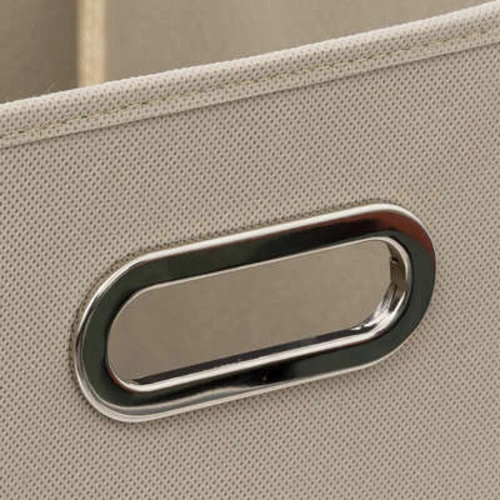 Integrované kovové madlo nejen skvěle vypadá, ale hlavně usnadňuje vytahování krabice z police a její přenášení kamkoliv potřebujete. Pevná lepenka zpevněná kvalitní látkou zajistí dlouhou životnost, a konstrukce umožňuje rychlé složení, pokud zrovna box nepotřebujete. Praktické řešení pro uložení sezónního oblečení, hraček, dokumentů nebo textilu, které nezabere místo po složení.
