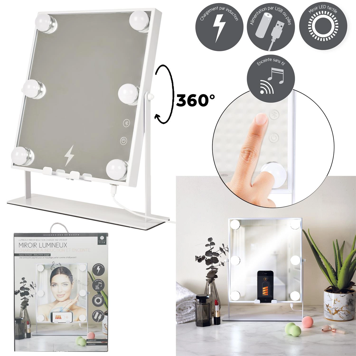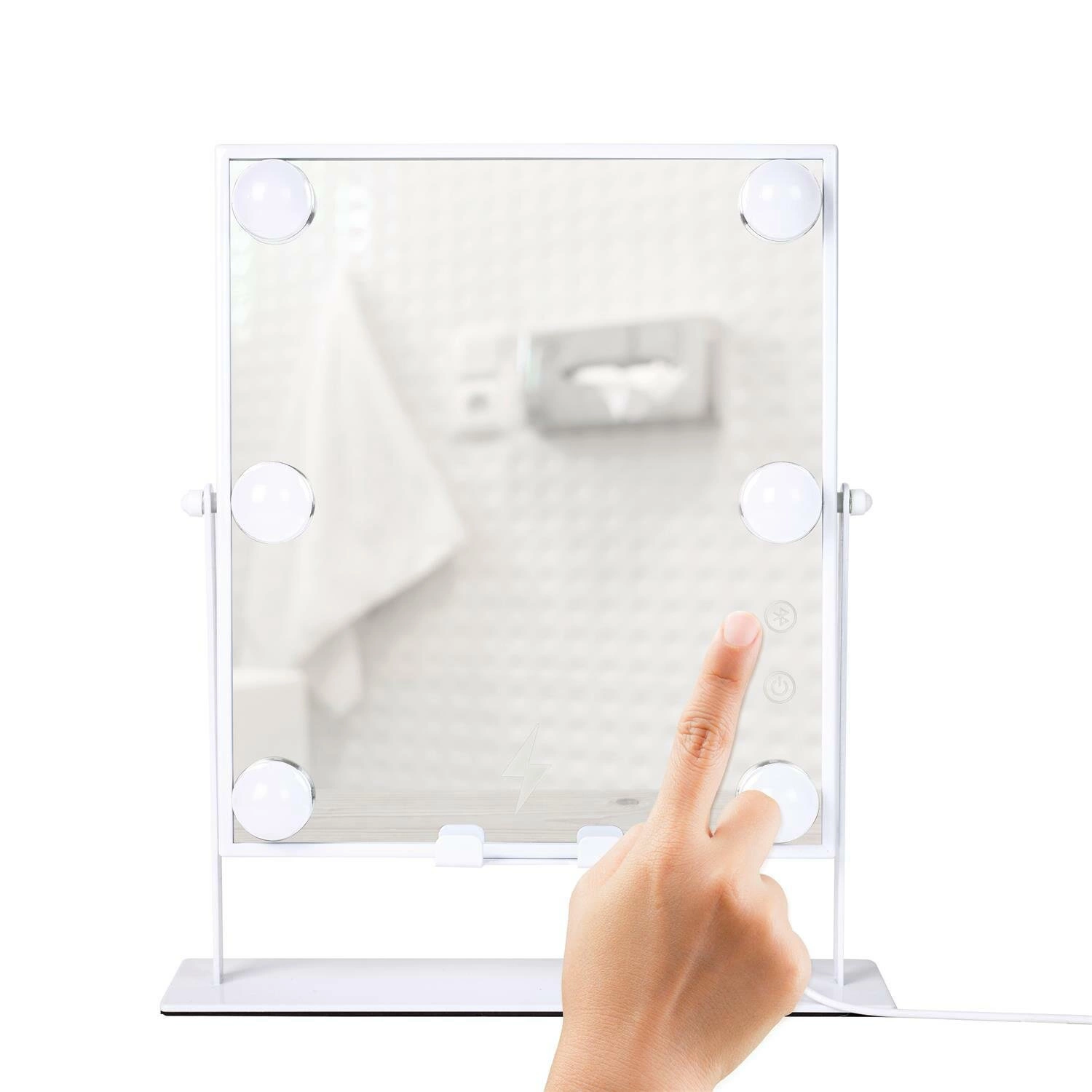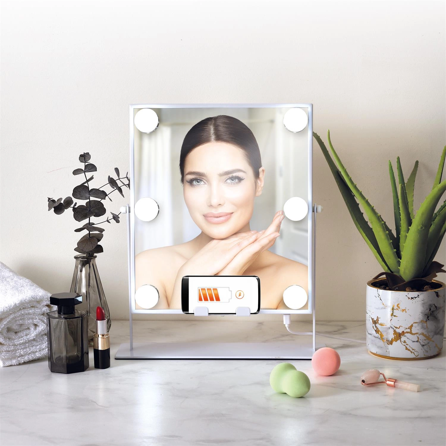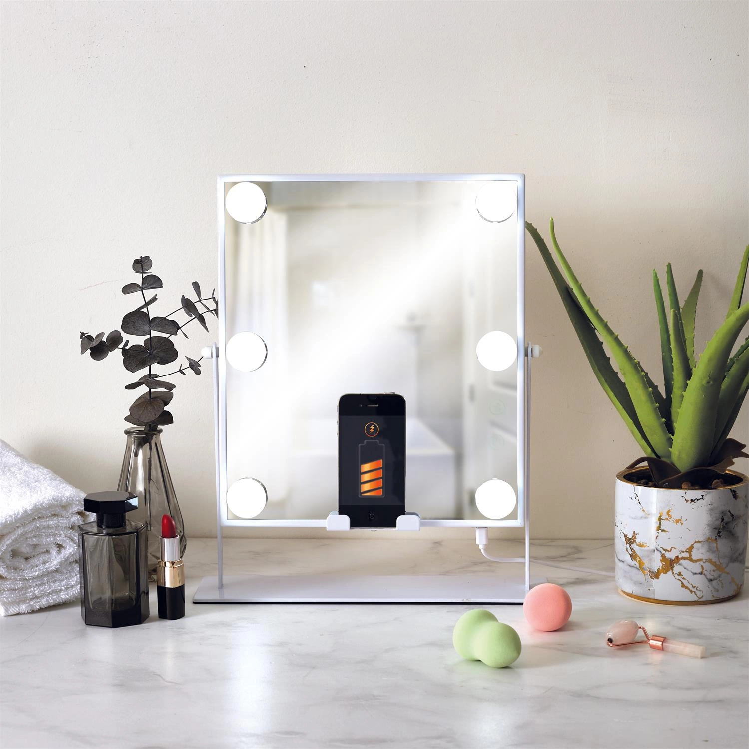 LED stojací zrcadlo na líčení s reproduktorem a nabíječkou Intesi je stylový a moderní doplněk, který promění vaše každodenní rituály péče o vzhled. Obdélníková plocha o rozměrech 36,7 × 31,8 cm je zasazena do elegantního bílého kovového rámu, který zajišťuje vynikající stabilitu a dlouhou životnost. Zrcadlo je vybaveno úsporným LED osvětlením, Bluetooth reproduktorem a indukční nabíječkou, díky čemuž se stane nepostradatelnou součástí každého toaletního stolku, ložnice nebo šatny.