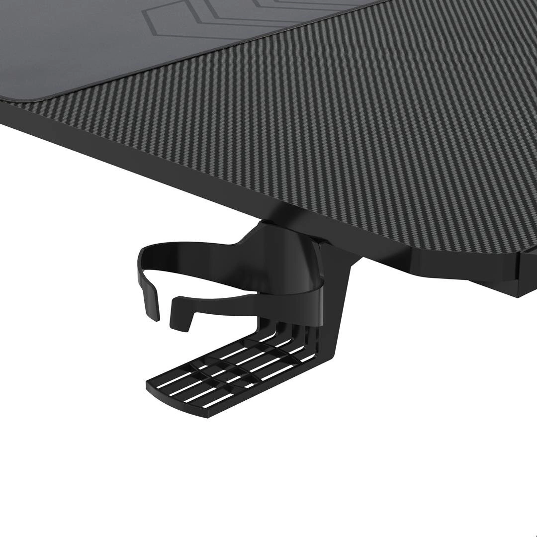 - Speciální držáky na příslušenství – zajišťují rychlý přístup ke sluchátkům a nápoji, pomáhají udržet pořádek při hraní nebo práci