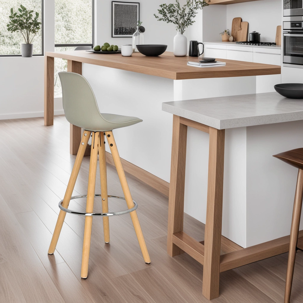 - Kompaktní rozměry (výška sedáku 73 cm) – ideální k ostrůvkům a vysokým pultům