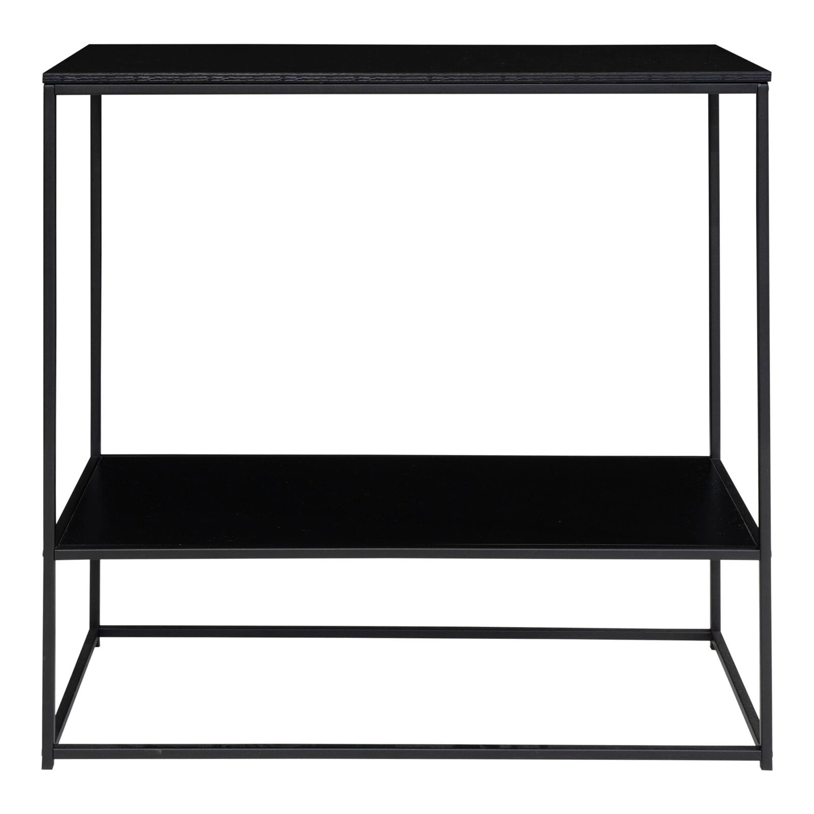 Černá konzole Vita zaujme výraznou, geometrickou siluetou na kovových lyžinách. Kombinace surové černé podnože s deskou v odstínu černého dubu dokonale vystihuje loftový charakter – přináší do interiéru moderní eleganci a industriální nádech. Polomatná povrchová úprava podtrhuje minimalistický styl a zajišťuje, že nábytek vypadá skvěle jak samostatně, tak ve společnosti dalších dekorací.