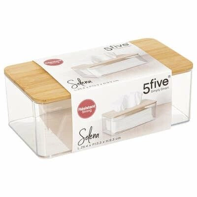 Víko je vyrobeno z přírodního bambusu a dodává nejen eleganci a styl, ale je také pr.šetrné k životnímu prostředí. Používáním této nádoby si tedy můžete být jisti, že přispíváte k ochraně naší planety. Obdélníkový formát nádoby na kapesníky Selena navíc umožňuje její snadné používání a je praktický. Můžete jej snadno otevírat a zavírat a zajistit, aby byly ubrousky chráněny před vlhkostí a znečištěním. Obdélníkový tvar nádoby navíc usnadňuje její skladování a vejde se kamkoli, ať už je to koupelna, kuchyň nebo kancelář.