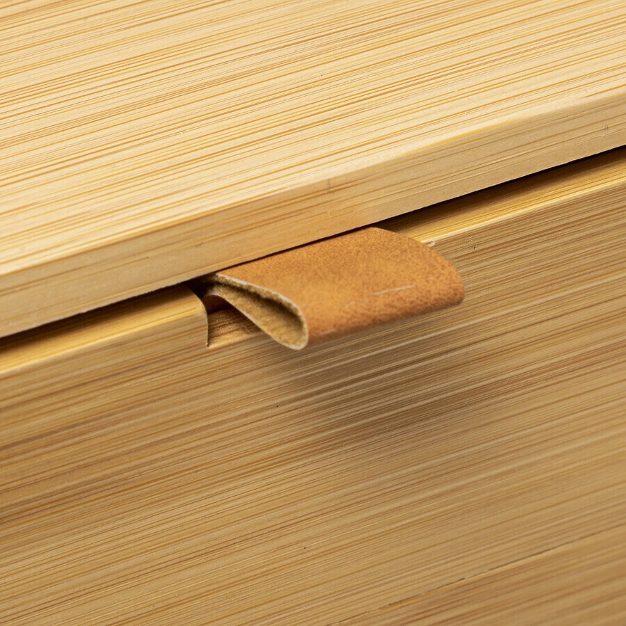 Šperkovnice šperkovnice je vyrobena z vysoce kvalitního bambusu a poskytuje nejen bezpečné uložení, ale také dodá vašemu prostoru eleganci a přírodní kouzlo. Bambusový materiál je nejen odolný, ale také ekologický, což znamená, že se staráte nejen o své cennosti, ale také o pr.životní prostředí. Kromě toho rukojeti z ekokůže dodávají rakvi elegantní vzhled a usnadňují její přenášení. Nemusíte se bát, že byste rakev omylem otevřeli, protože úchyty jsou pevně uchyceny a zajišťují bezpečné uzavření.