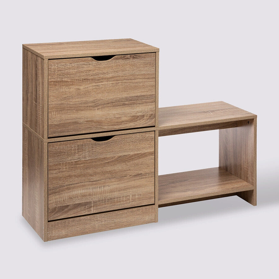 Botník Tiro 5five simply smart je funkční kus nábytku s přírodním povrchem, navržený pro pohodlnou organizaci předsíně. Díky dvěma prostorným zásuvkám a praktické polici snadno uspořádáte obuv i drobnosti každodenní potřeby. Skandinávský styl, šířka 100 cm a kompaktní hloubka 32 cm zaručují, že botník dokonale zapadne do každého interiéru a zároveň nabídne maximum úložného prostoru.