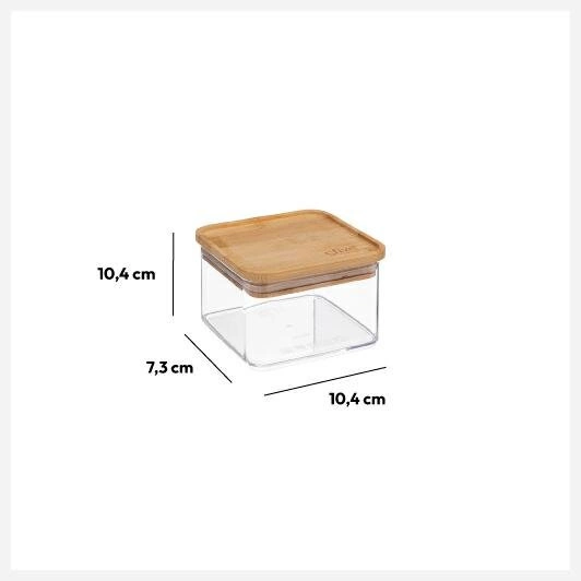 Možnost stohovat jednu dózu na druhou optimalizuje prostor, což je výhodné při skladování ve skříních nebo v chladničce. Víko z bambusu je nejen estetické, ale také zajišťuje bezpečný a hygienický pr.kontakt s potravinami. Víko je vybaveno mimořádně vzduchotěsným uzávěrem, který nepropouští tekutiny ani pachy.