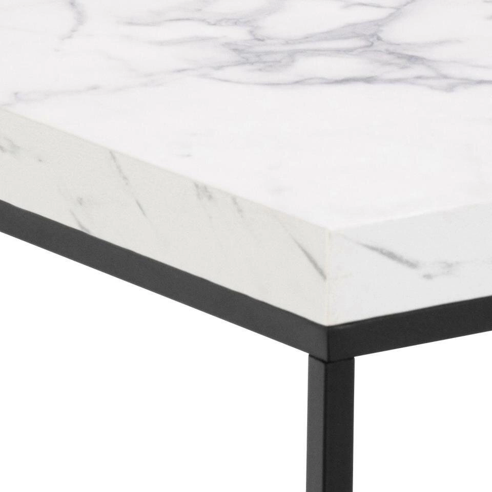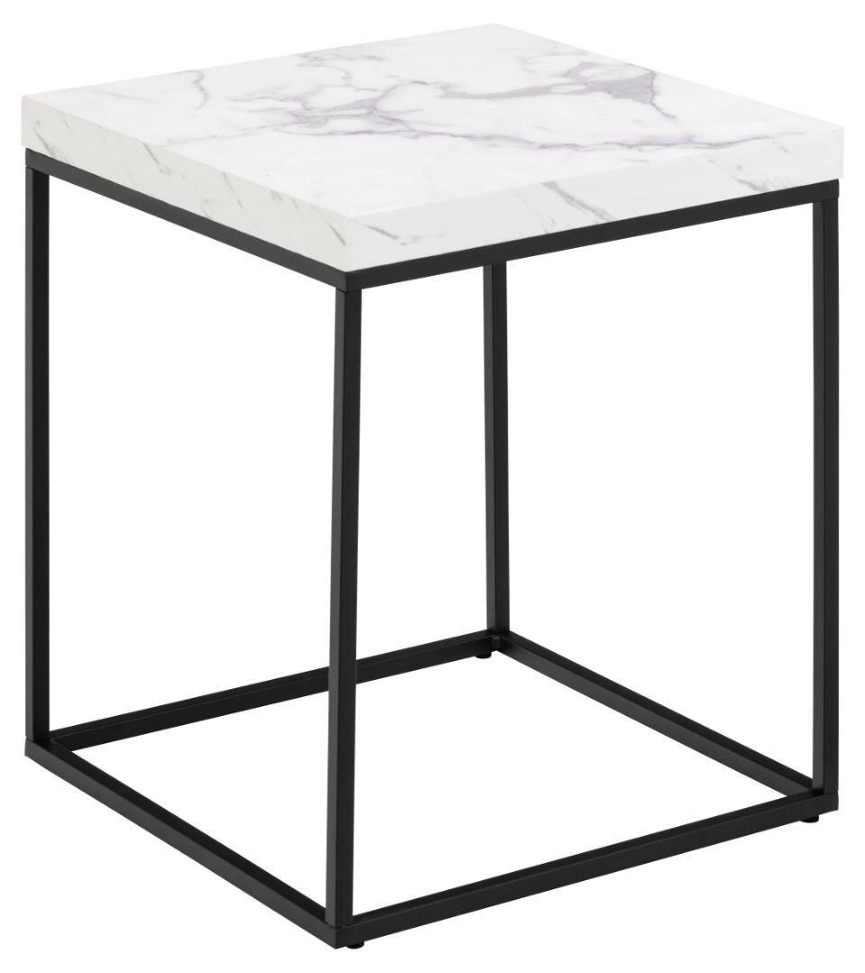 Stolek na kávu Barossa čtvercový 40x40 cm bílý mramor moderní do obýváku Actona je spojením stylu, funkčnosti a nadčasové elegance. Je vybavený odolnou deskou o tloušťce 3 cm s efektem bílého mramoru a pevnou černou základnou z práškově lakované oceli, díky čemuž se tento moderní konferenční stolek perfektně hodí jak do obývacího pokoje, ložnice, tak i do kanceláře. Kompaktní rozměr 40x40x45 cm umožňuje snadné umístění i do menších prostor.