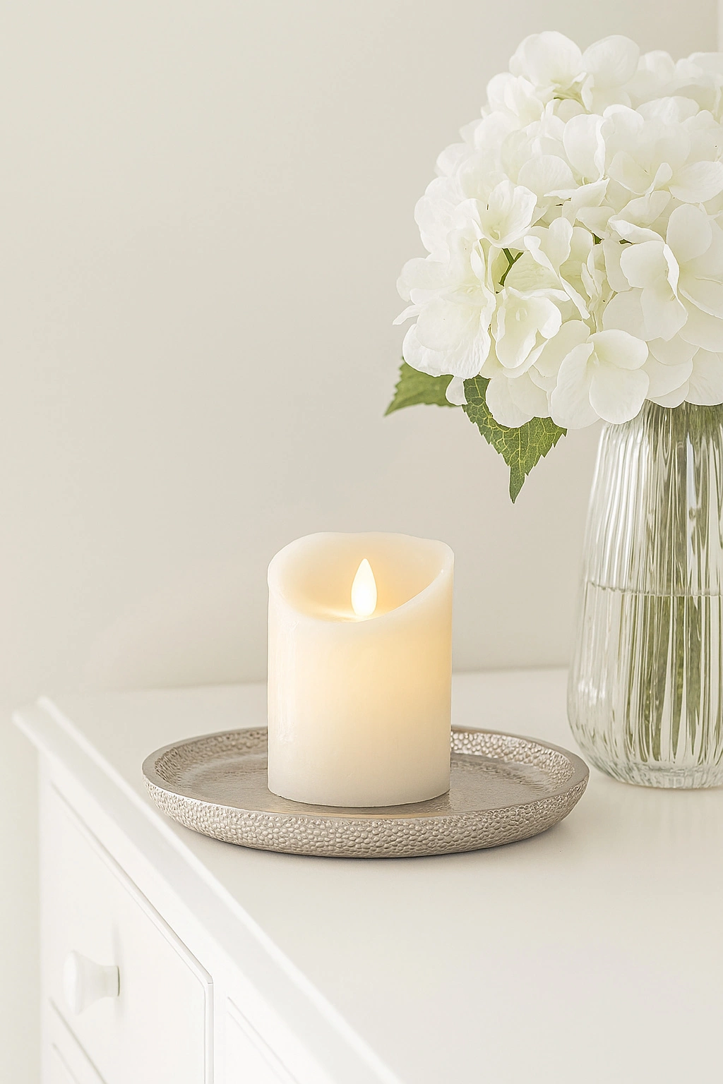 Krémová LED svíčka Atmosphera se perfektně hodí jak do moderních, tak do klasických aranžmá. Její jemná barva a minimalistický tvar snadno zapadnou do každého interiéru – od útulného obývacího pokoje až po elegantní jídelní stůl. Výška 14 cm a šířka 10 cm z ní dělají výrazný, ale nepřehlcující doplněk, který můžete vystavit samostatně nebo v kombinaci s dalšími dekoracemi a navodit tak jedinečnou atmosféru při každodenním použití i při speciálních příležitostech.