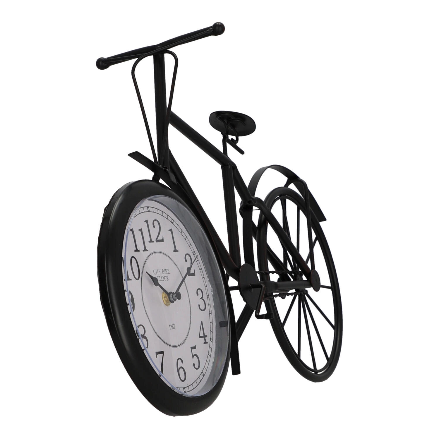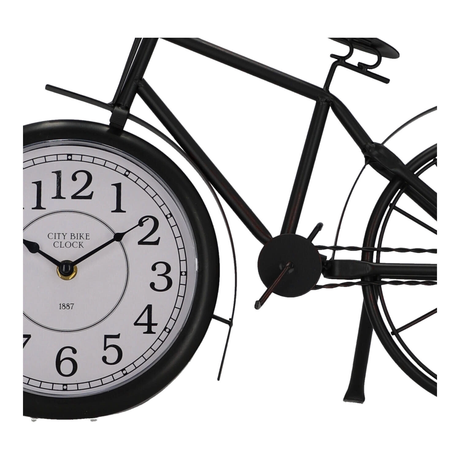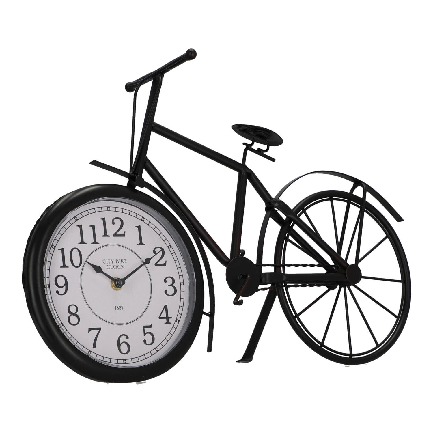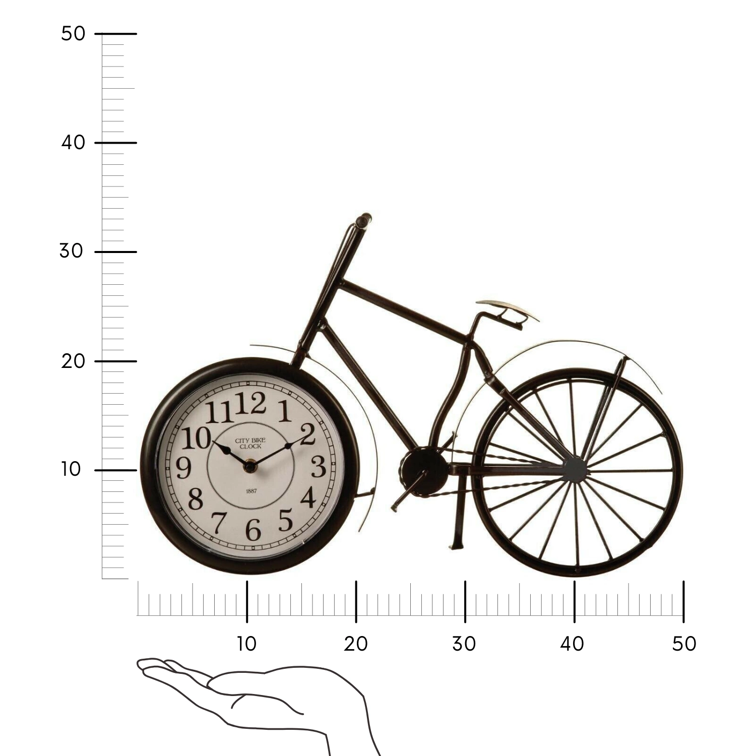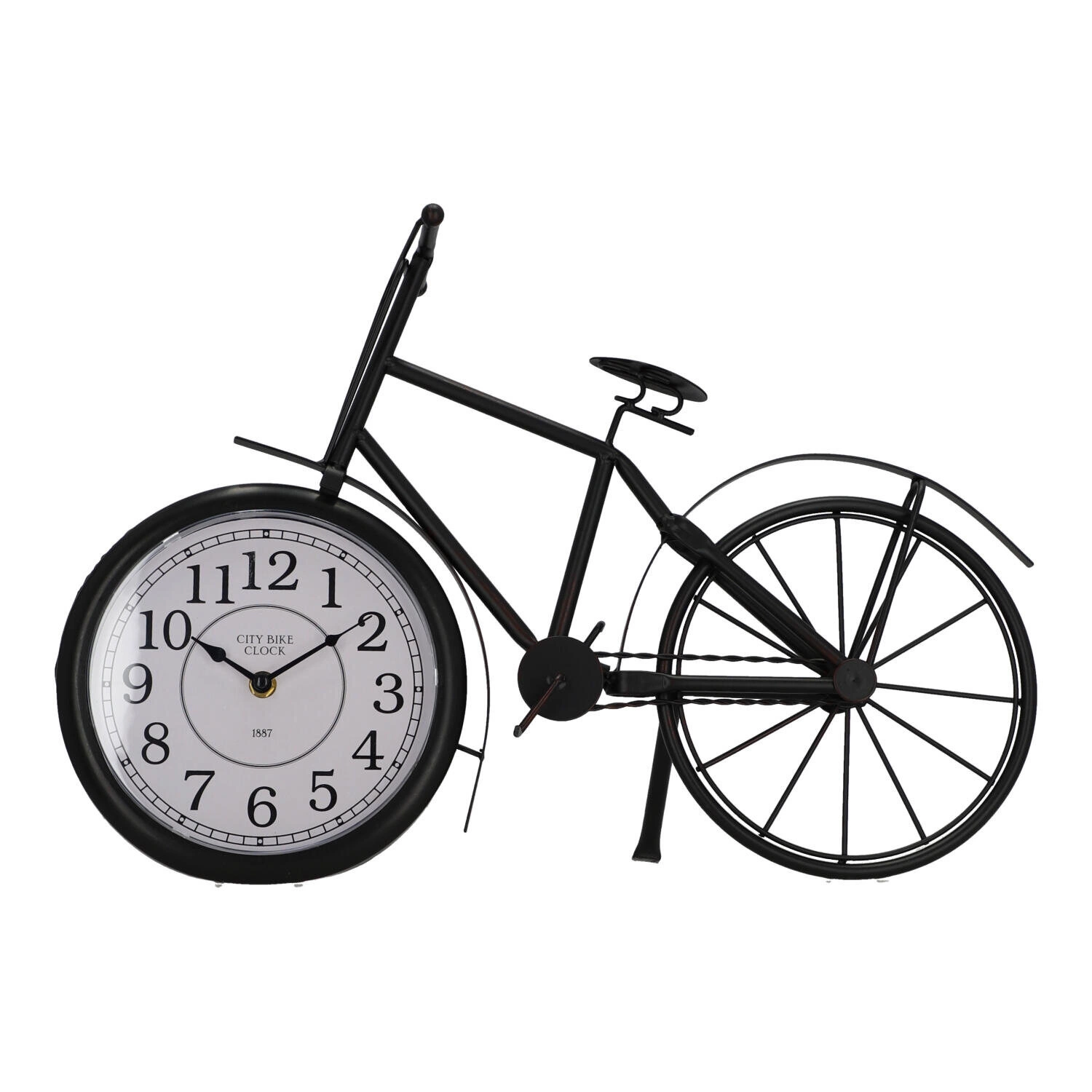 Stojací retro hodiny kolo Dimitri od značky Atmosphera jsou jedinečným dekorativním prvkem z kovu a skla, který stylově spojuje industriální charakter s klasickým retro designem. Díky rozměrům 50 cm na šířku, 33,8 cm na výšku a 13 cm do hloubky se tyto černé hodiny skvěle hodí jako dekorace na komodu, konzoli nebo polici v obývacím pokoji, ložnici či kanceláři. Tichý mechanismus zajišťuje klidnou atmosféru a umožňuje si naplno užívat originální design bez rušivého tikání.