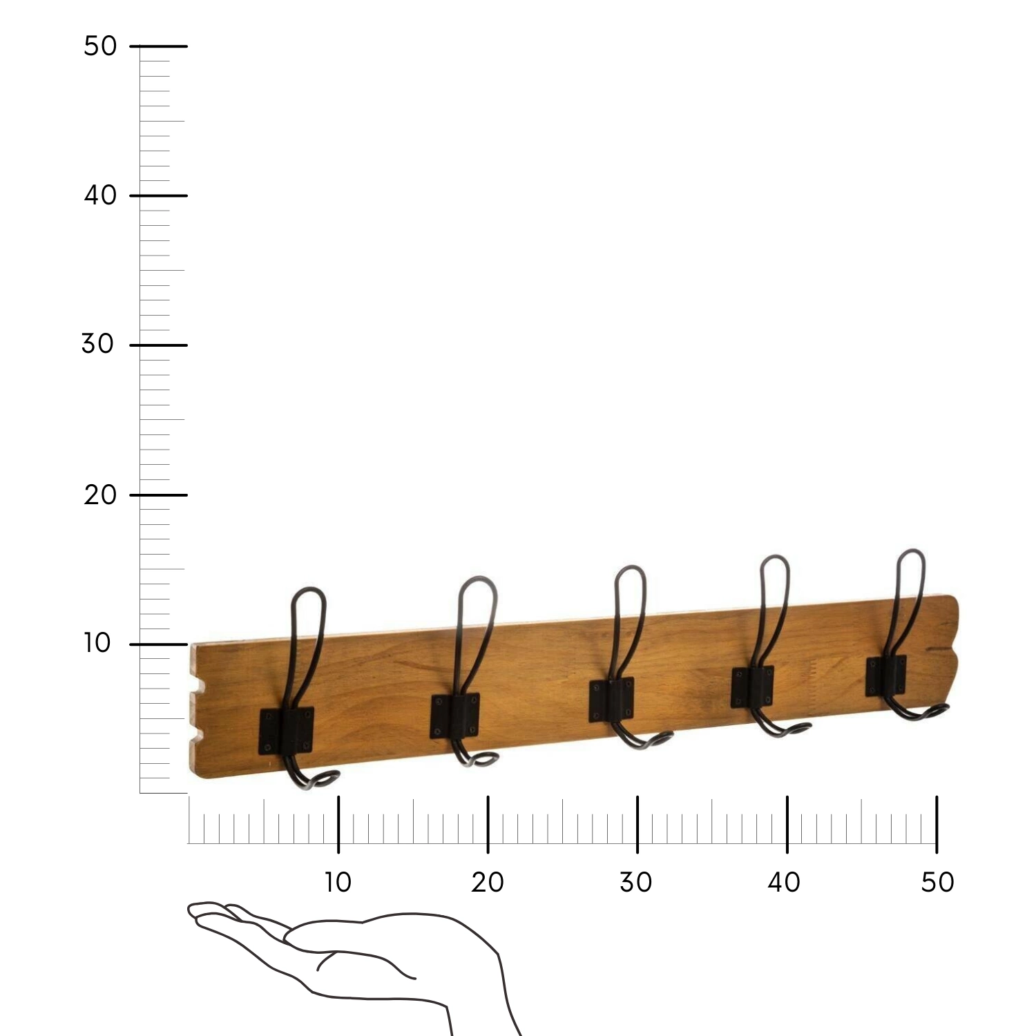 Raoul moderní nástěnný věšák do předsíně od značky Atmosphera je praktickým spojením přírodního borovicového dřeva a odolného kovu v oblíbeném loftovém stylu. Model o šířce 64 cm a výšce 14 cm nabízí pět pevných háčků, které zajistí pořádek a komfort v každodenním používání. Nástěnný věšák v kombinaci přírodního dřeva a černé barvy skvěle doplní moderní, minimalistické i industriální interiéry, a stane se tak stylovým i funkčním doplňkem vaší předsíně.