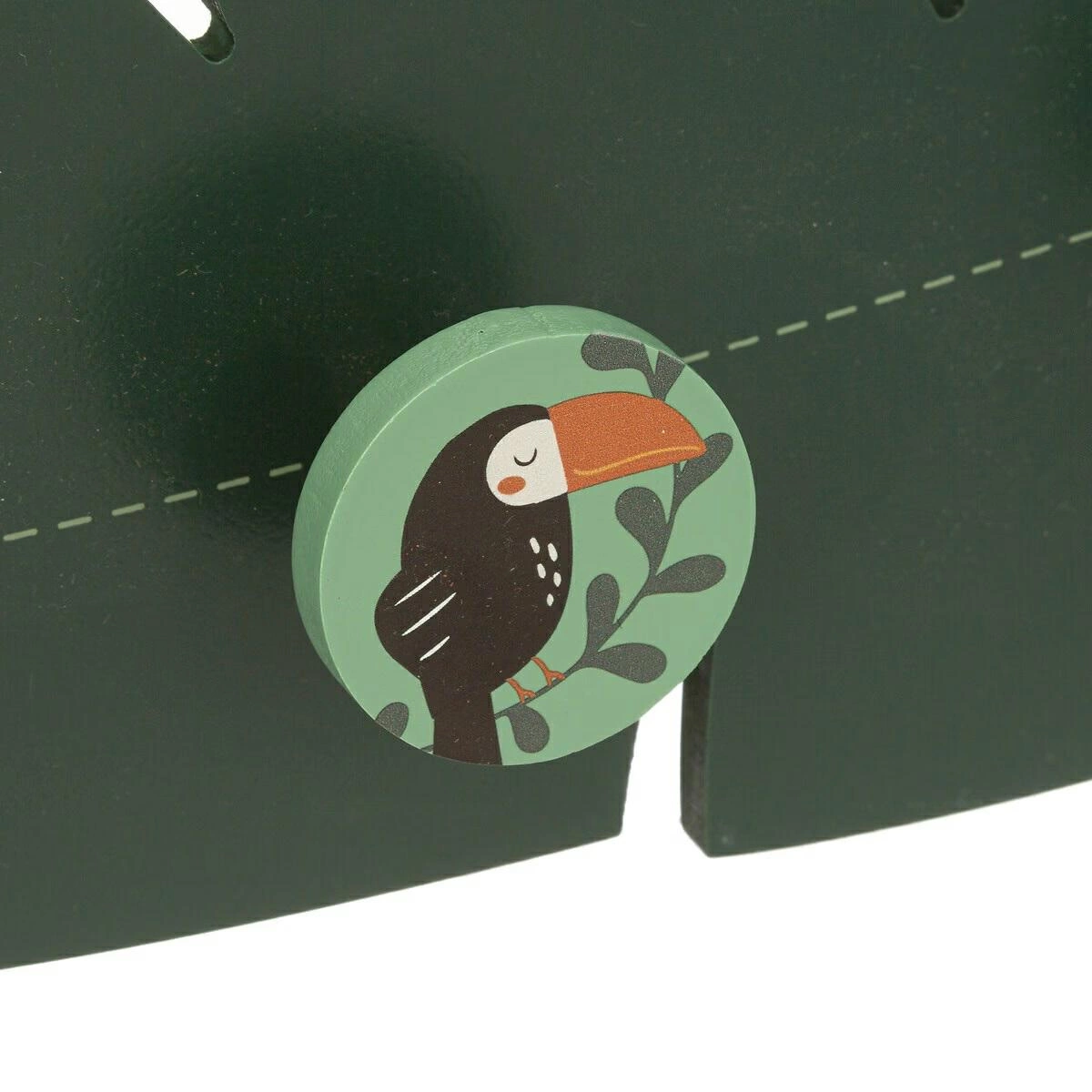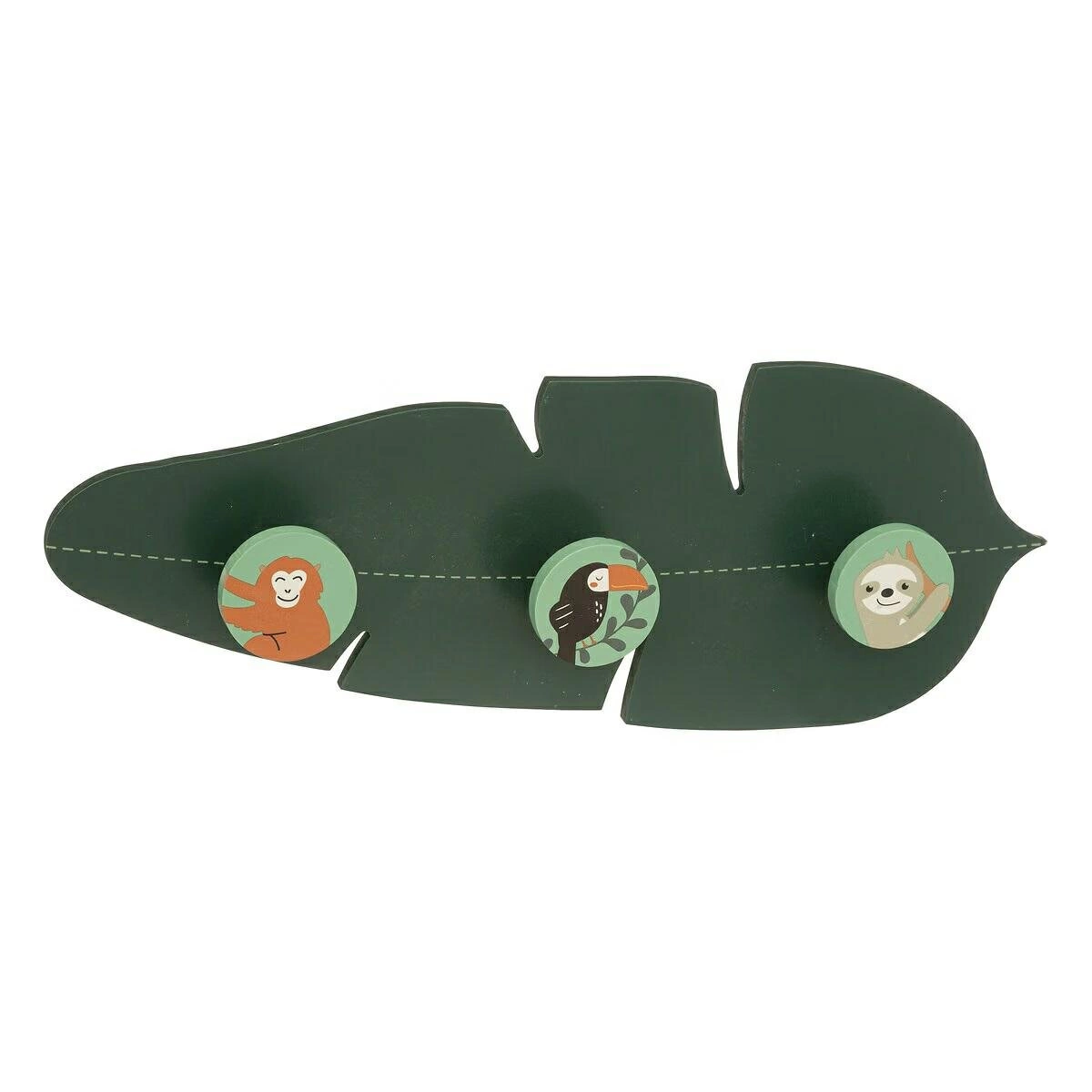 Nástěnný věšák do dětského pokoje ve tvaru listu od značky Atmosphera je praktickým řešením s originálním designem inspirovaným motivem džungle. Vyrobený z odolné dřevovláknité desky, o šířce 40 cm, vybavený 3 pohodlnými háčky, pomáhá udržovat pořádek v dětském prostoru a zároveň přináší do interiéru veselý, zelený akcent. Tento dekorativní nástěnný věšák je ideální nejen na bundy, batůžky nebo doplňky, ale i jako stylová ozdoba dětského pokoje.