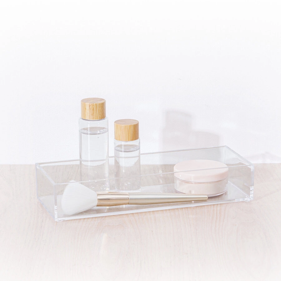 Organizer na kosmetiku Selena je ideální pro ty, kdo si potrpí na pořádek a chtějí mít oblíbené produkty vždy po ruce. Díky průhledným stěnám máte neustálý přehled o obsahu boxu, takže už nemusíte zdlouhavě prohledávat zásuvky a skříňky. Obdélníkový tvar a kompaktní rozměry (25,6 × 9,6 × 4,8 cm) umožňují umístění i do menších prostor, přitom pojme jak make-up, tak koupelnové doplňky.