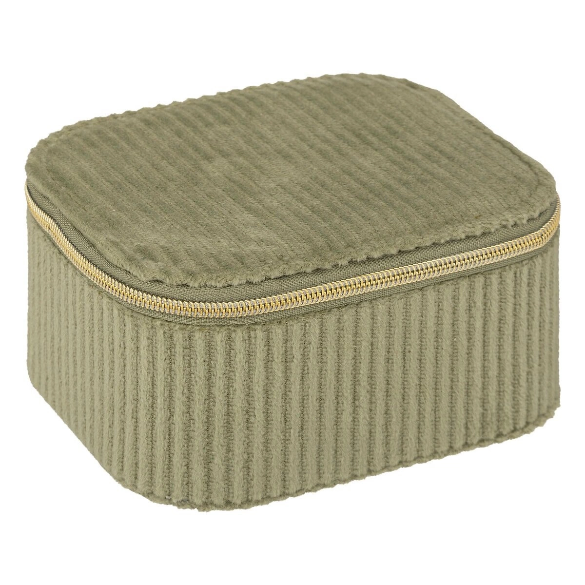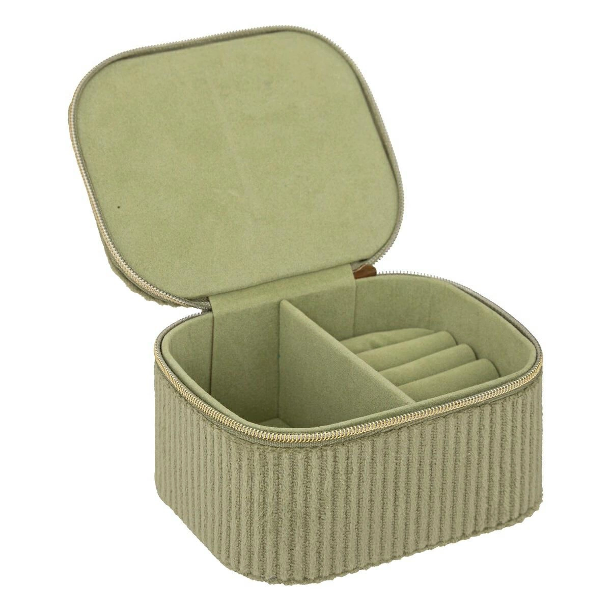 Manšestrová šperkovnice Enya v zelené barvě je ideálním místem pro uložení vašich nejcennějších šperků. Elegantní design zakončený zlatým zipem jí dodává nejen sofistikovaný vzhled, ale také zajišťuje bezpečnost vašich cenností.