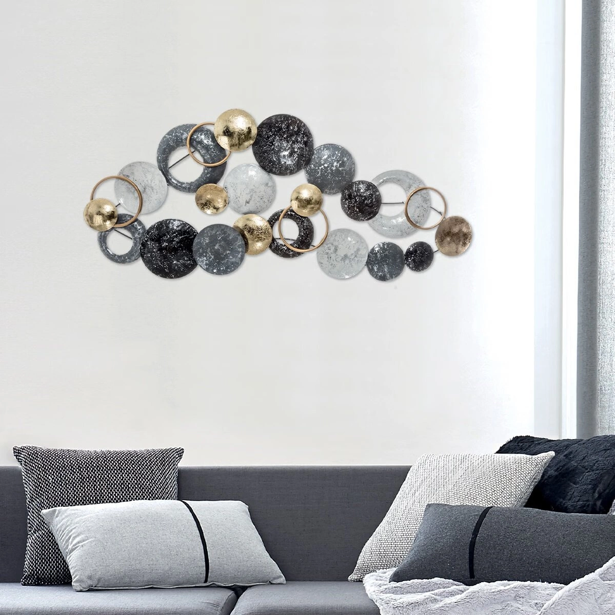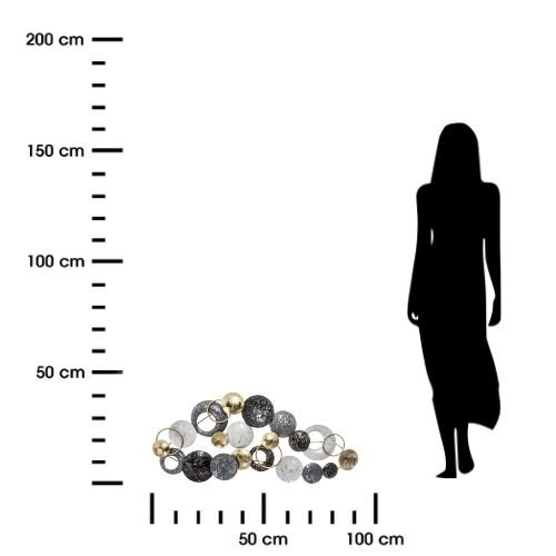 Zařazením kovové dekorace Lali do obývacího pokoje nebo jídelny získáte originální prvek výzdoby, který oživí i ten nejminimalističtější interiér. Asymetrické kovové kruhy v elegantní zlaté a šedé vytvářejí překvapivou kompozici inspirovanou moderním užitým uměním. Díky tomu se tato dekorace skvěle hodí jako dominantní bod stěny a podtrhne osobitý styl vašeho domova.