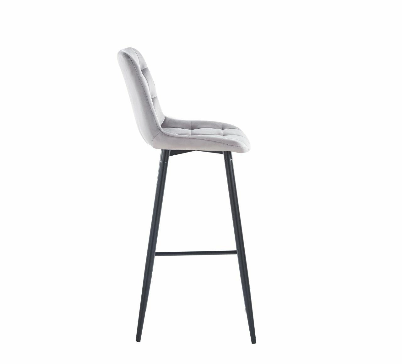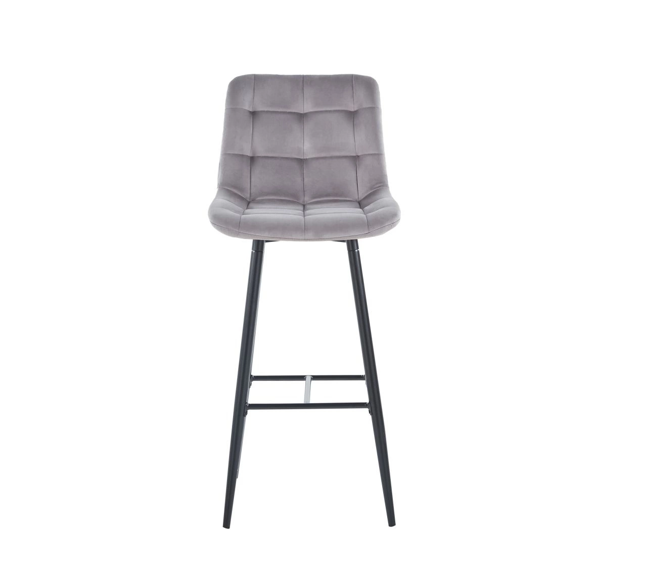 Hoker Poly High od značky Intesi je moderní barová židle s vysokým, pohodlným opěradlem, čalouněná měkkou šedou sametovou látkou. Pevná konstrukce na černých kovových nohách s výškou sedáku 77 cm je ideální volbou k kuchyňskému ostrůvku nebo vysokému pultu. Tento elegantní hoker spojuje stylový vzhled, ergonomii a snadnou údržbu, nabízí každodenní funkčnost a pohodlí pro vaši domácnost.