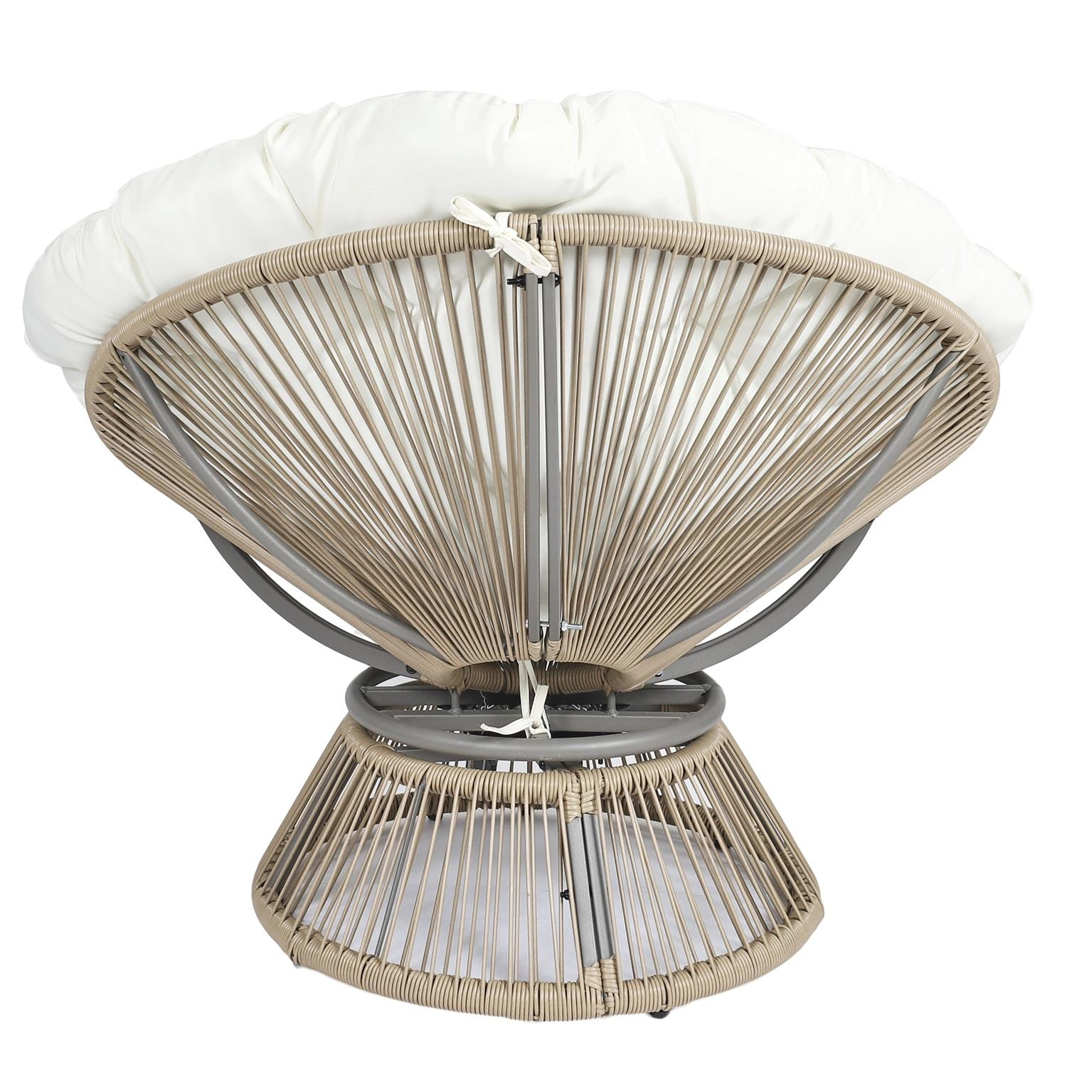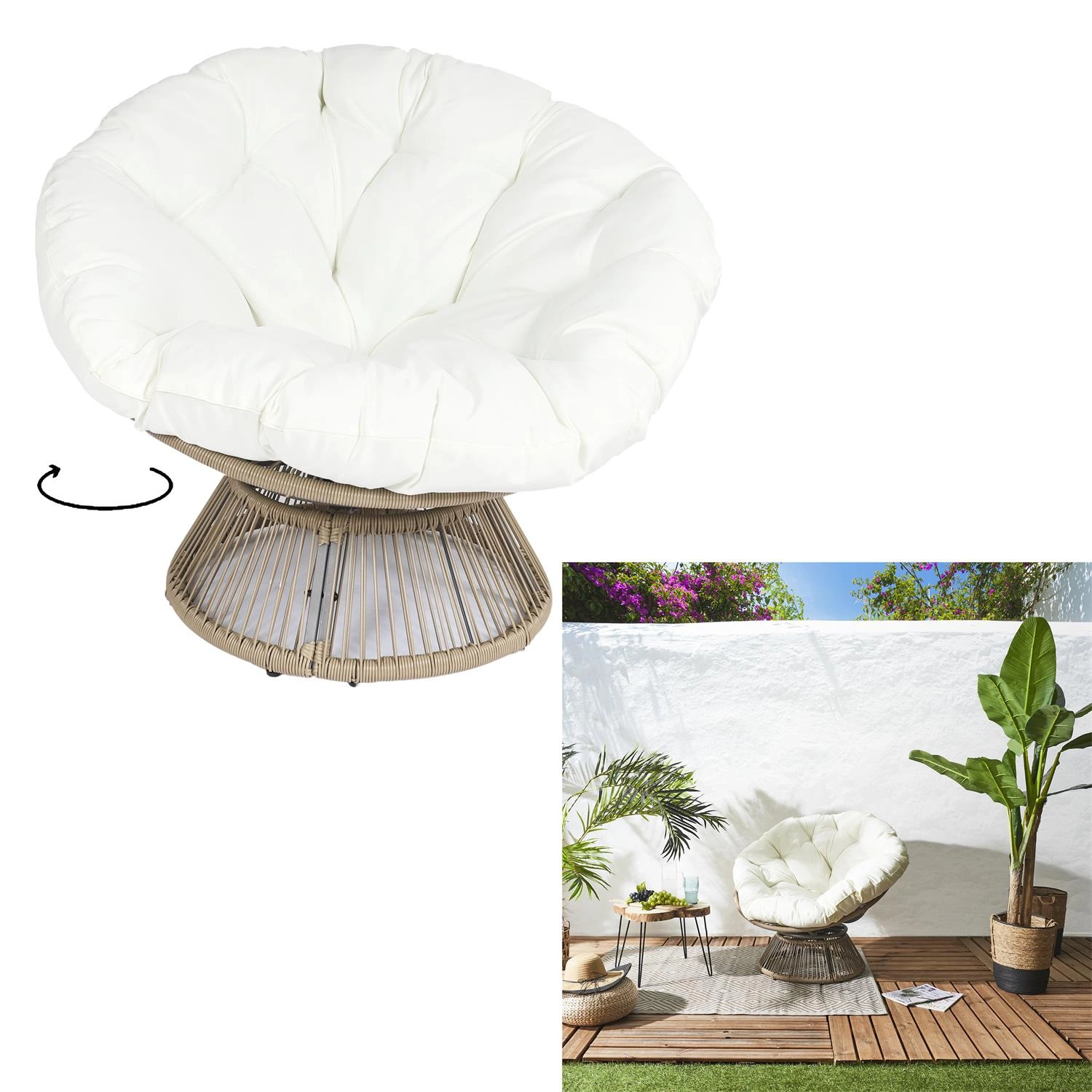Nemusíte se obávat, že by se polštářek při používání křesla nepohodlně posouval. Rám křesla, vyrobený z kovu potaženého odolným plastem, dokonale imituje ratanový výplet a dodává křeslu přirozený půvab. Díky otočnému sedáku můžete nejen pohodlně odpočívat, ale také se při opalování na terase otočit směrem ke slunci. Mimořádně praktické řešení, které vám umožní maximálně si užívat blahodárných účinků přírody.