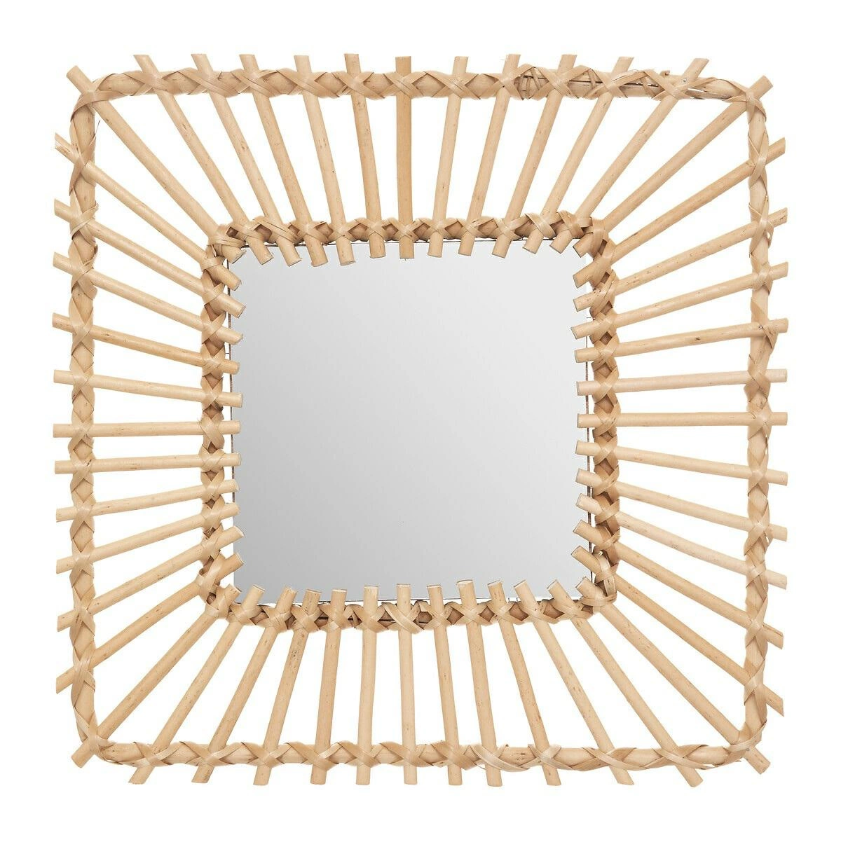 Čtvercové závěsné zrcadlo Leoini 40x40 cm od značky Atmosphera je dekorativní prvek v boho stylu, který spojuje přírodní ratan s jedinečným designem. Čtvercový tvar a ručně pletený rám z ratanu dodávají zrcadlu lehkost a jemně útulnou atmosféru, ideální pro zvýraznění charakteru předsíně, ložnice nebo šatny. Zrcadlová plocha o rozměrech 40x40 cm poskytuje jasný obraz a praktická možnost zavěšení zajišťuje pohodlné každodenní využití.