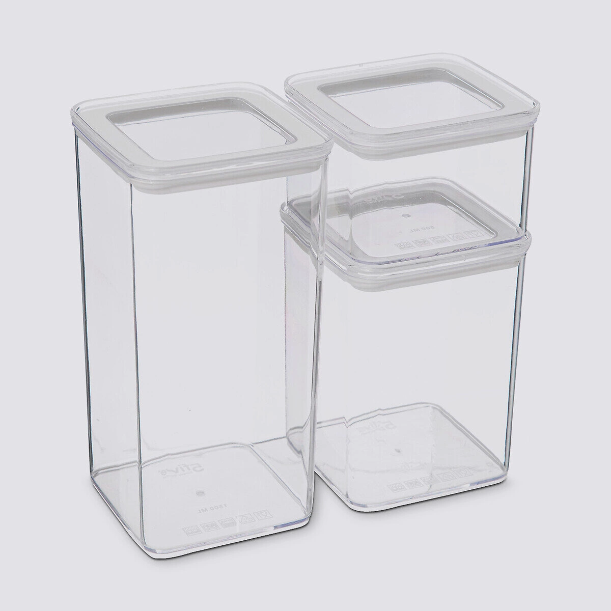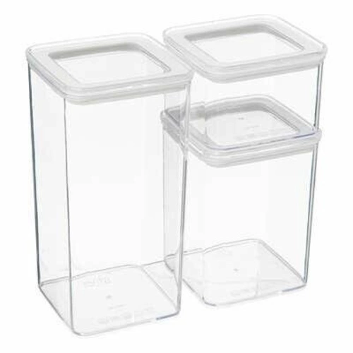 Sada tří průhledných dóz Eske je dokonalým řešením pro ukládání různých produktů v kuchyni. Nabízejí různé velikosti a kapacity, které vám umožní efektivně uspořádat prostor.