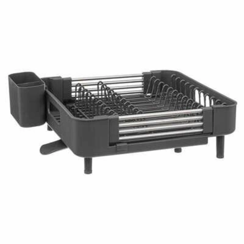 Odkapávač na nádobí Etira L od značky 5five simply smart je moderní řešení, které zajistí pořádek a pohodlí ve vaší kuchyni. Vyrobený z kombinace kovu a odolného plastu v elegantní tmavě šedé barvě, skvěle zapadne na každou kuchyňskou linku. Díky velkým rozměrům – 50 cm na šířku a 35 cm do hloubky – bez problémů pojme talíře, sklenice, hrnky i příbory, a zajistí tak komplexní organizaci po umytí nádobí.