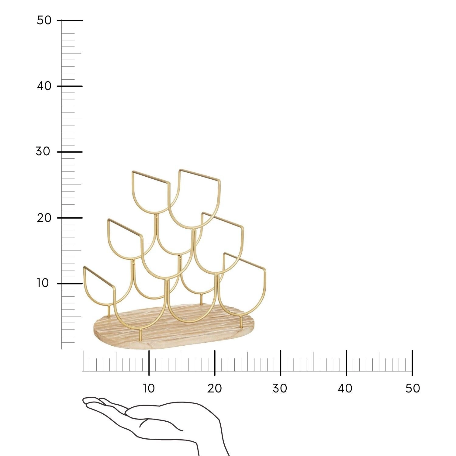 Kovové konzoly ve zlaté barvě dodávají stojanu eleganci a luxusní vzhled. Zlatá barva konzol krásně kontrastuje s dřevěným podstavcem a vytváří harmonickou kompozici, která upoutá pozornost a dodá elegantní nádech každé místnosti. Jednou z největších předností stojanu Rivi je jeho funkčnost. Díky počtu 6 přihrádek na lahve můžete vystavit své oblíbené ročníky a mít je vždy po ruce. Už nemusíte hledat místo ve skříni nebo spíži, nyní může být vaše víno hrdě vystaveno na kusu nábytku nebo na konzolovém stolku.