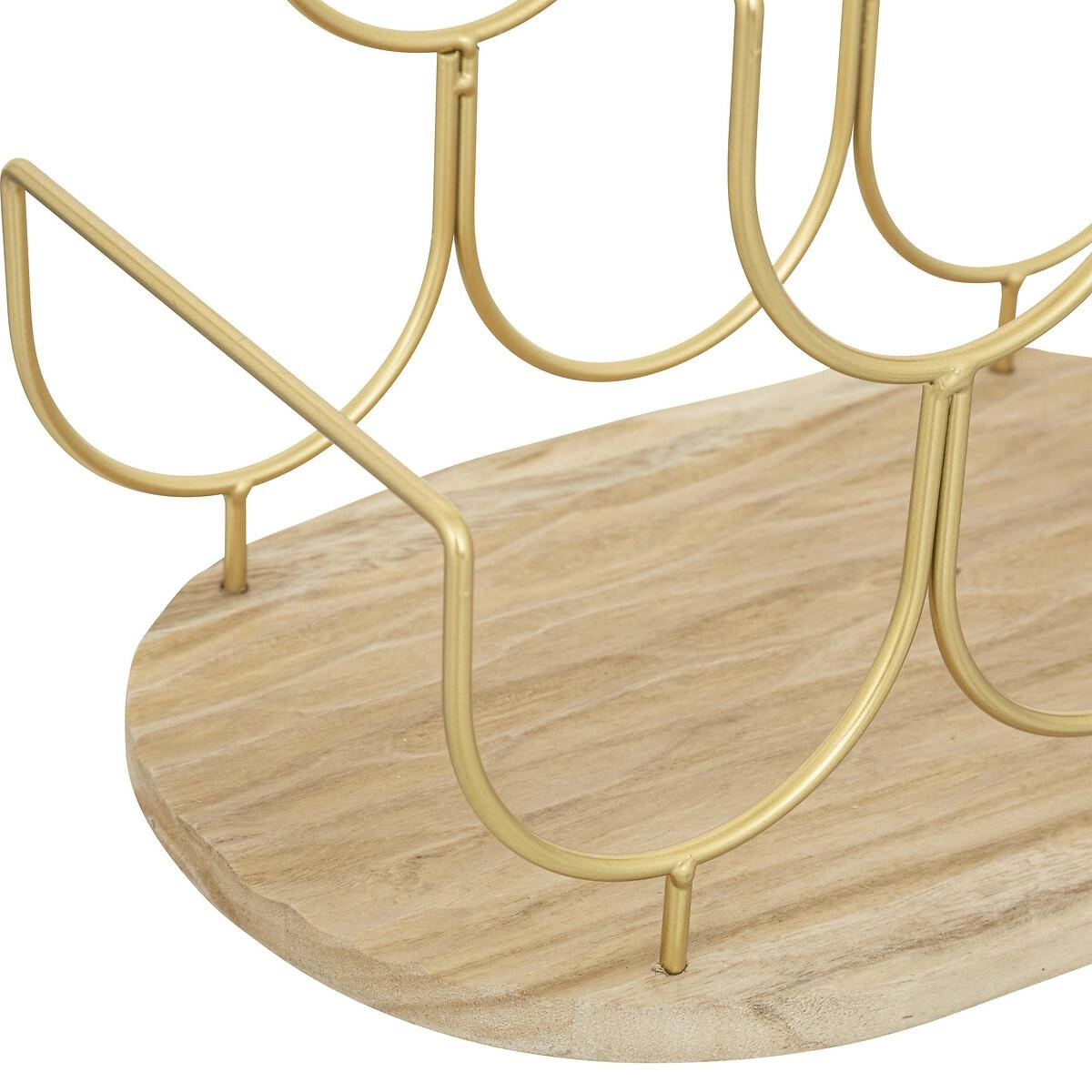 Zlatý stojan na lahve Rivi je nejen praktickým řešením pro uložení a vystavení vaší sbírky vín, ale také elegantním doplňkem vašeho interiéru. Díky svému jedinečnému designu je stojan Rivi schopen pojmout až 6 skvělých ročníků, které chcete vystavit. Oválný podstavec stojanu je vyroben z vyřezávaného dřeva paulovnie, které mu dodává přirozený půvab a teplo. Dřevo je nejen odolné, ale také příjemné na dotek, takže stojan Rivi je nejen praktickým, ale také estetickým prvkem vašeho interiéru.