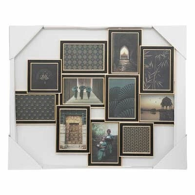 Multirám na fotografie Flavie od značky Atmosphera je moderní závěsný fotorám na stěnu v elegantní kombinaci černé a zlaté barvy, navržený pro vystavení až 11 oblíbených snímků. Rám je vyrobený z kombinace železa, skla a pevné dřevovláknité desky, vyniká matným povrchem a geometrickým uspořádáním, které podtrhne jedinečný charakter každého interiéru. Díky rozměrům – 62 cm na šířku a 49,5 cm na výšku – se snadno stane ústředním prvkem aranžmá v obývacím pokoji, ložnici nebo prostorné chodbě.
