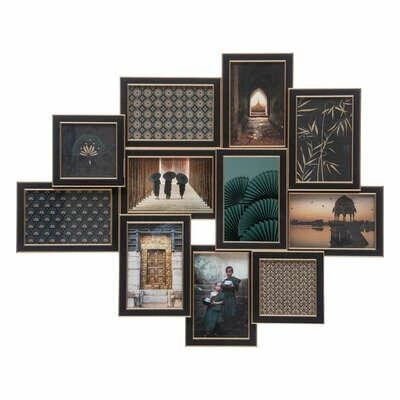 Multirám Flavie je ideální volbou pro ty, kteří chtějí vytvořit stylovou fotogalerii na stěně. Díky 11 místům na fotografie v různých formátech můžete vyprávět svůj osobní příběh – od rodinných portrétů, přes snímky z cest až po umělecké fotografie. Pečlivě zvolená barevnost – černý rám se zlatými detaily – dokonale zapadá do trendů moderního stylu s nádechem glamour a dodává interiéru eleganci i výraznost.