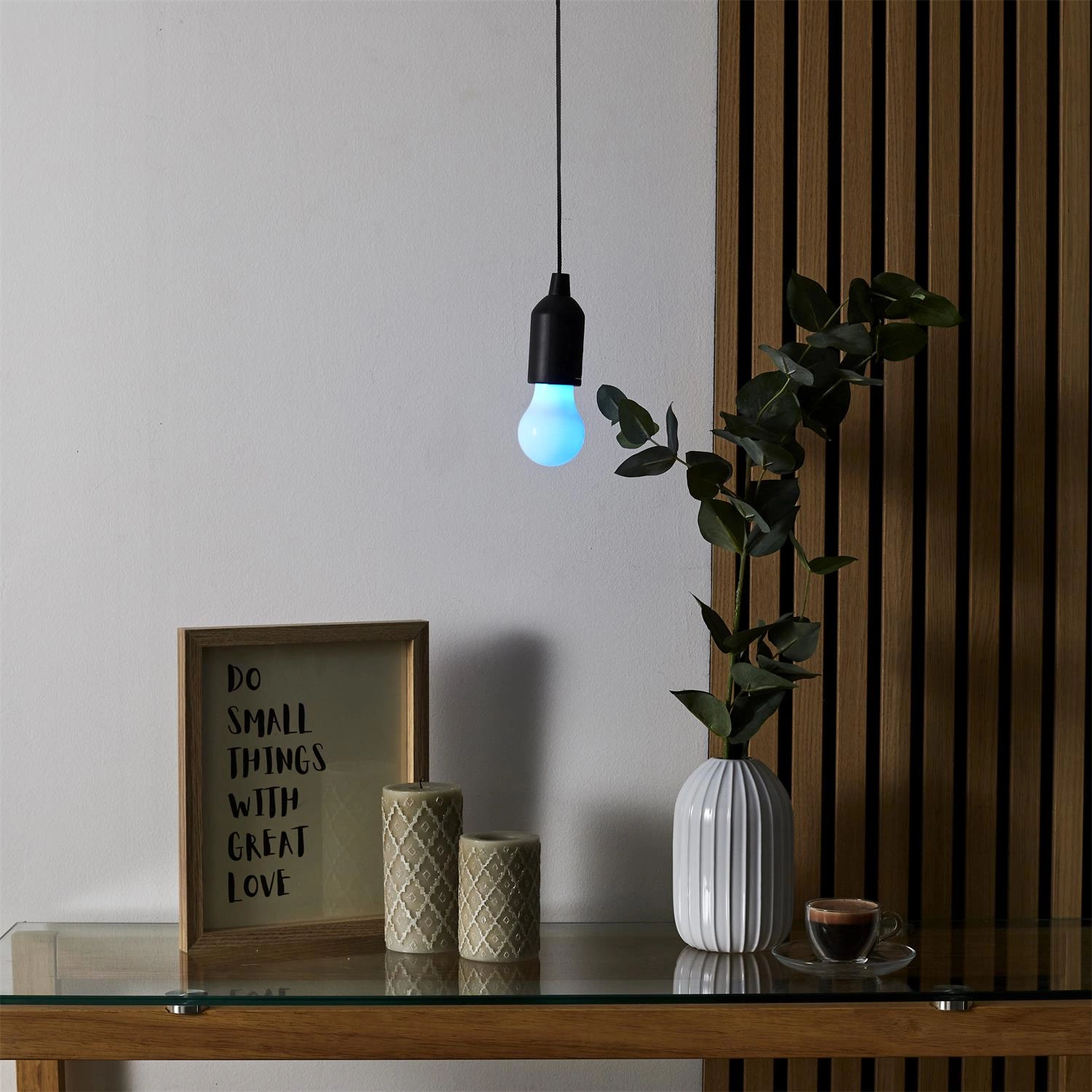 Žárovka na baterie je ideální pro osvětlení koutů, kde není k dispozici elektrická síť. Lampičku s mléčným stínítkem připomínajícím žárovku pr.ednice 5 cm lze snadno sestavit. Stačí ji pomocí provázku připevnit k jakémukoli komponentu. Vypínač je umístěn na plastové části lampy. Pro rozsvícení stačí na vypínač kliknout. Napájení na baterie (nejsou součástí dodávky). Délka kabelu 110 cm. Lampička má dálkové ovládání pro změnu barvy světla.
