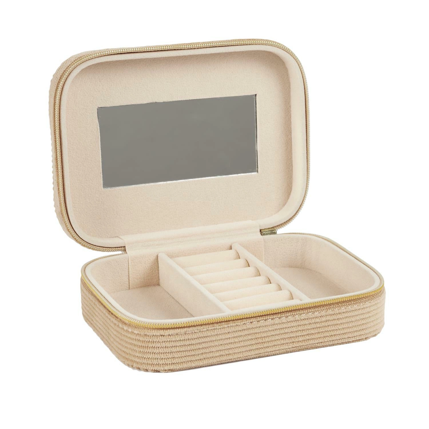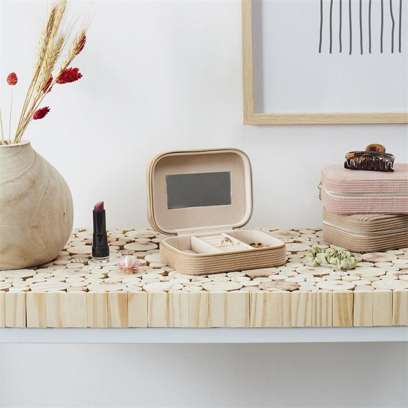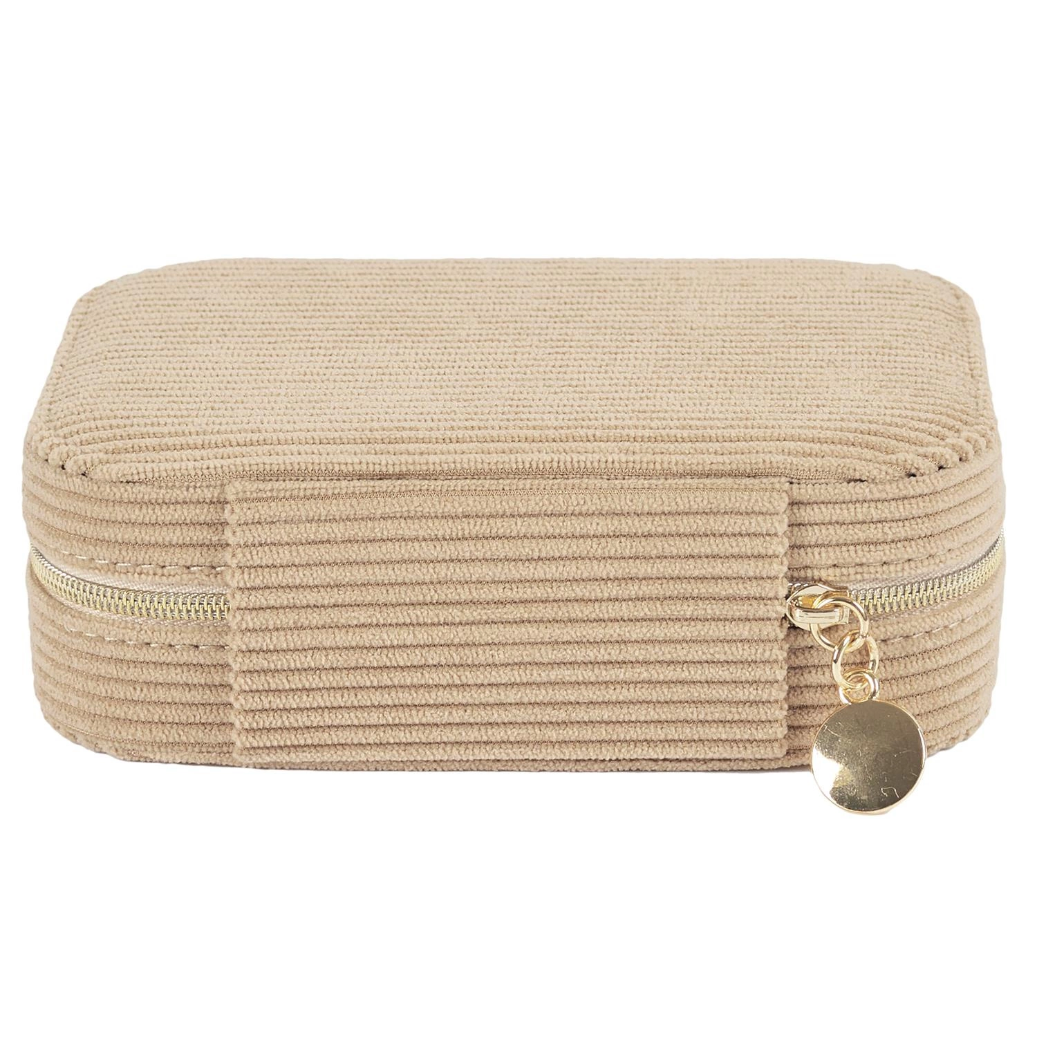 Šperkovnice manšestrový velur béžové barvy je nepostradatelný organizér na šperky, který dodá každému interiéru šarm a eleganci. Díky své funkčnosti a stylovému designu je ideální pro ty, kteří chtějí mít své drahocenné doplňky uklizené a chráněné.